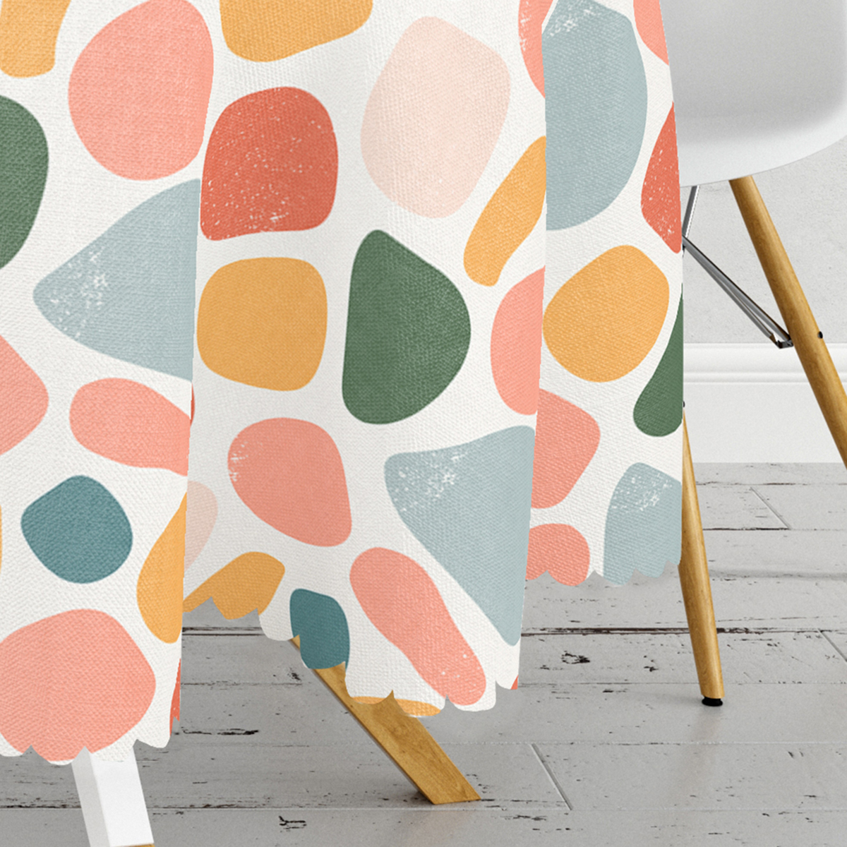 Beyaz Zeminli Geometrik Desenli Dijital Baskılı Modern Yuvarlak Masa Örtüsü - Çap 140cm Realhomes