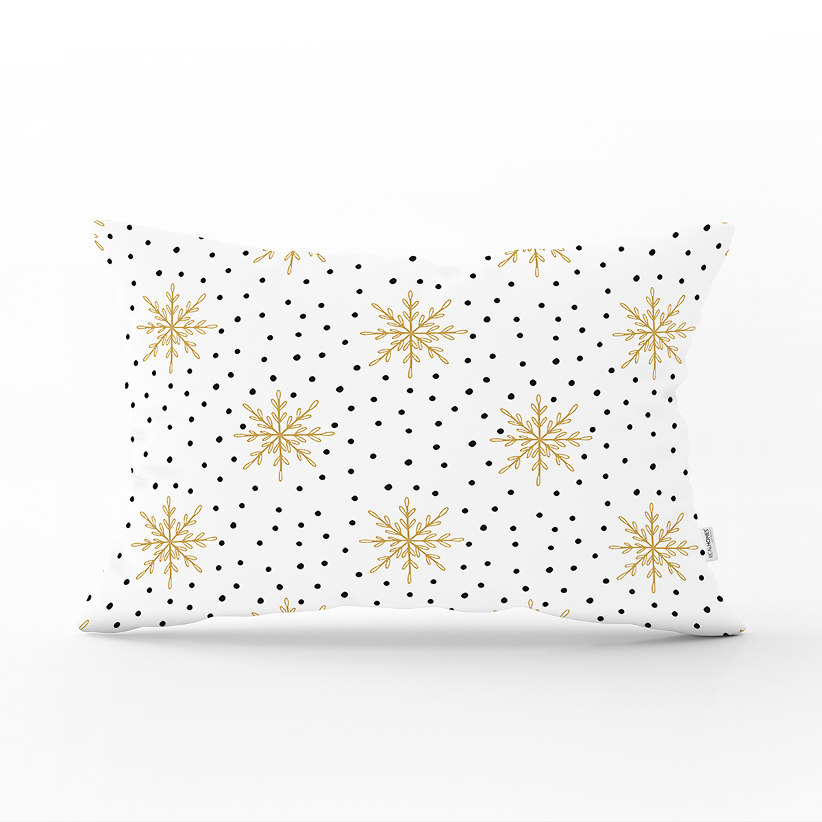 Beyaz Zeminli Gold Detaylı Kartanesi Dijital Baskılı Modern Dikdörtgen Yastık Kırlent Kılıfı