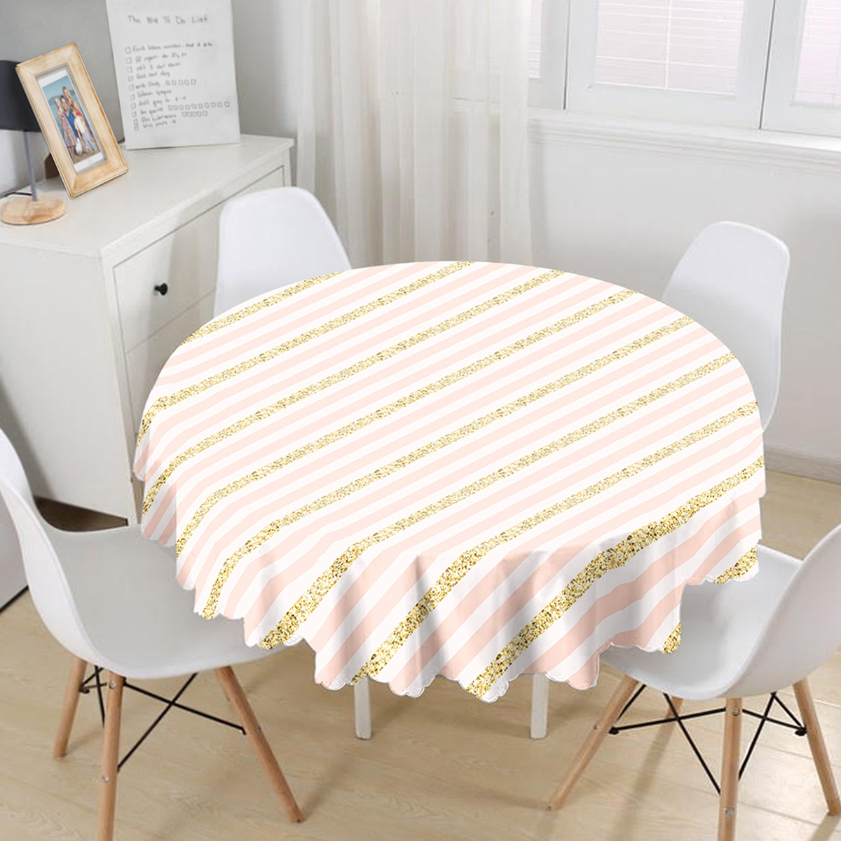 Beyaz Zeminli Pembe Yatay Çizgili Dijital Baskılı Modern Yuvarlak Masa Örtüsü - Çap 140cm Realhomes