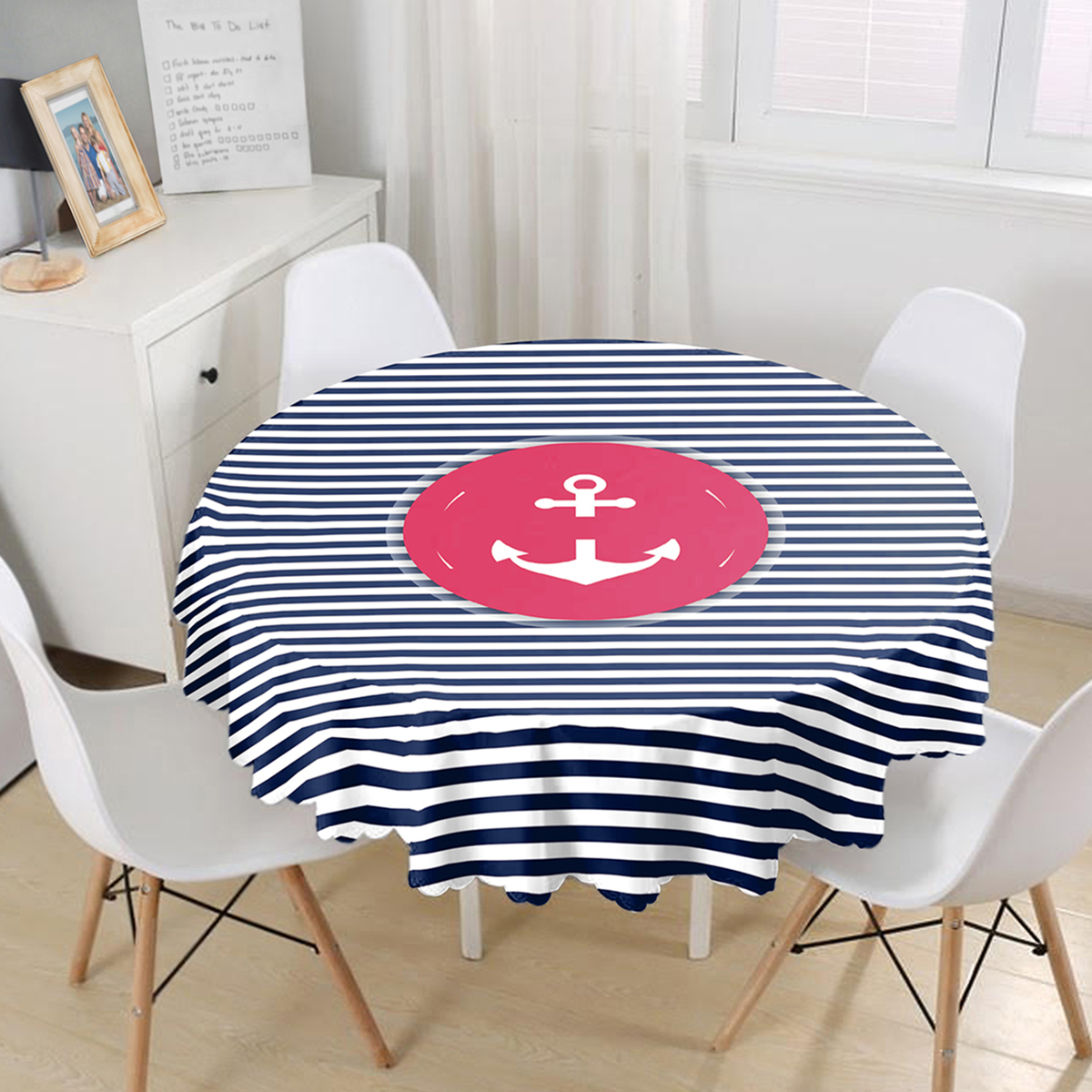 Beyaz Zeminli Renkli Çapa Desenli Dijital Baskılı Modern Yuvarlak Masa Örtüsü – Çap 140cm