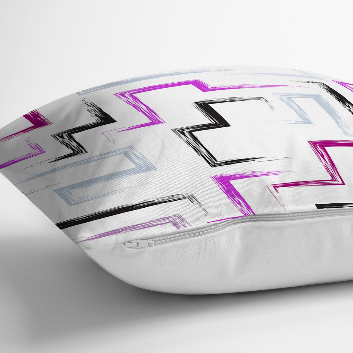 Beyaz Zeminli Renkli Modern Çizimli Dijital Baskılı Modern Yastık Kırlent Kılıfı