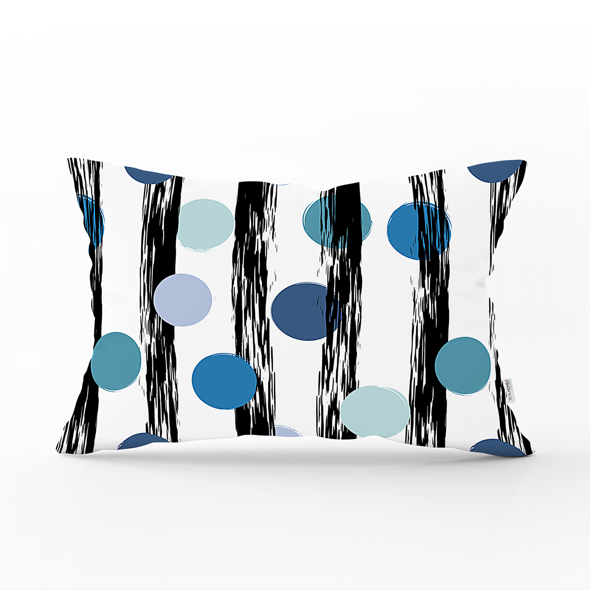 Beyaz Zeminli Renkli Puantiyeli Dijital Baskılı Modern Dikdörtgen Yastık Kırlent Kılıfı