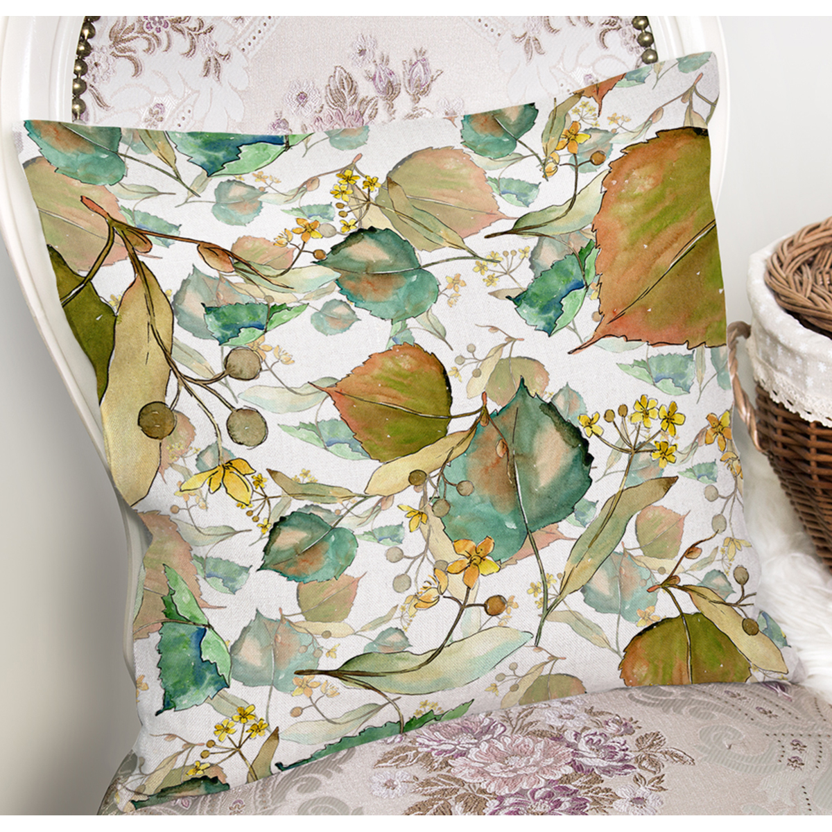 Beyaz Zeminli Sonbahar Yaprak Desenli Dijital Baskılı Modern Yastık Kırlent Kılıfı Realhomes