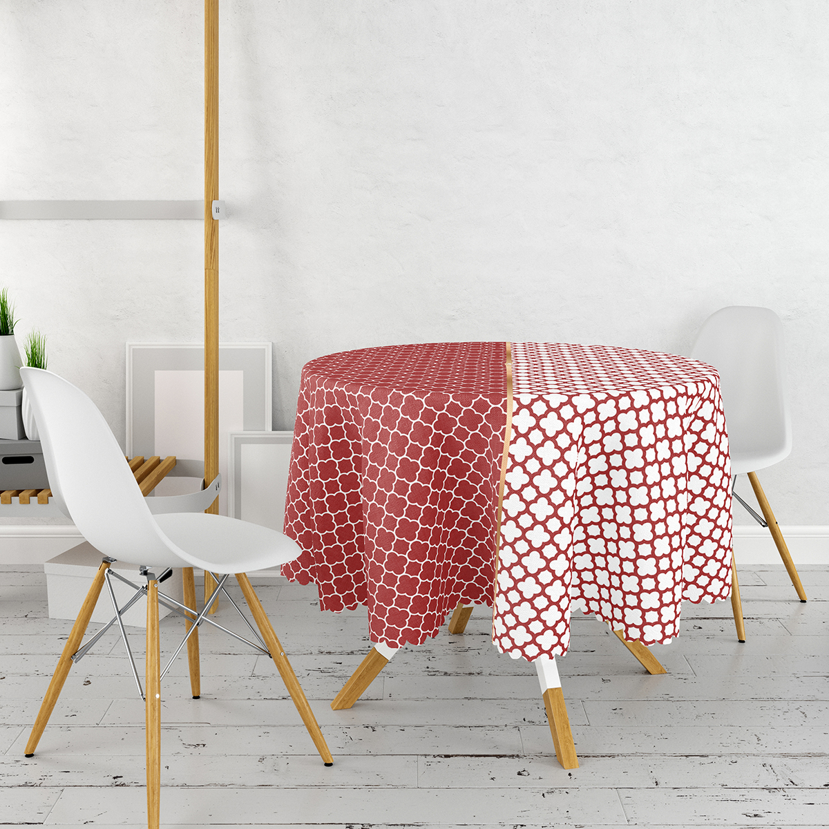 Bordo & Beyaz Ogea Desenli Dijital Baskılı Modern Yuvarlak Masa Örtüsü - Çap 140cm Realhomes