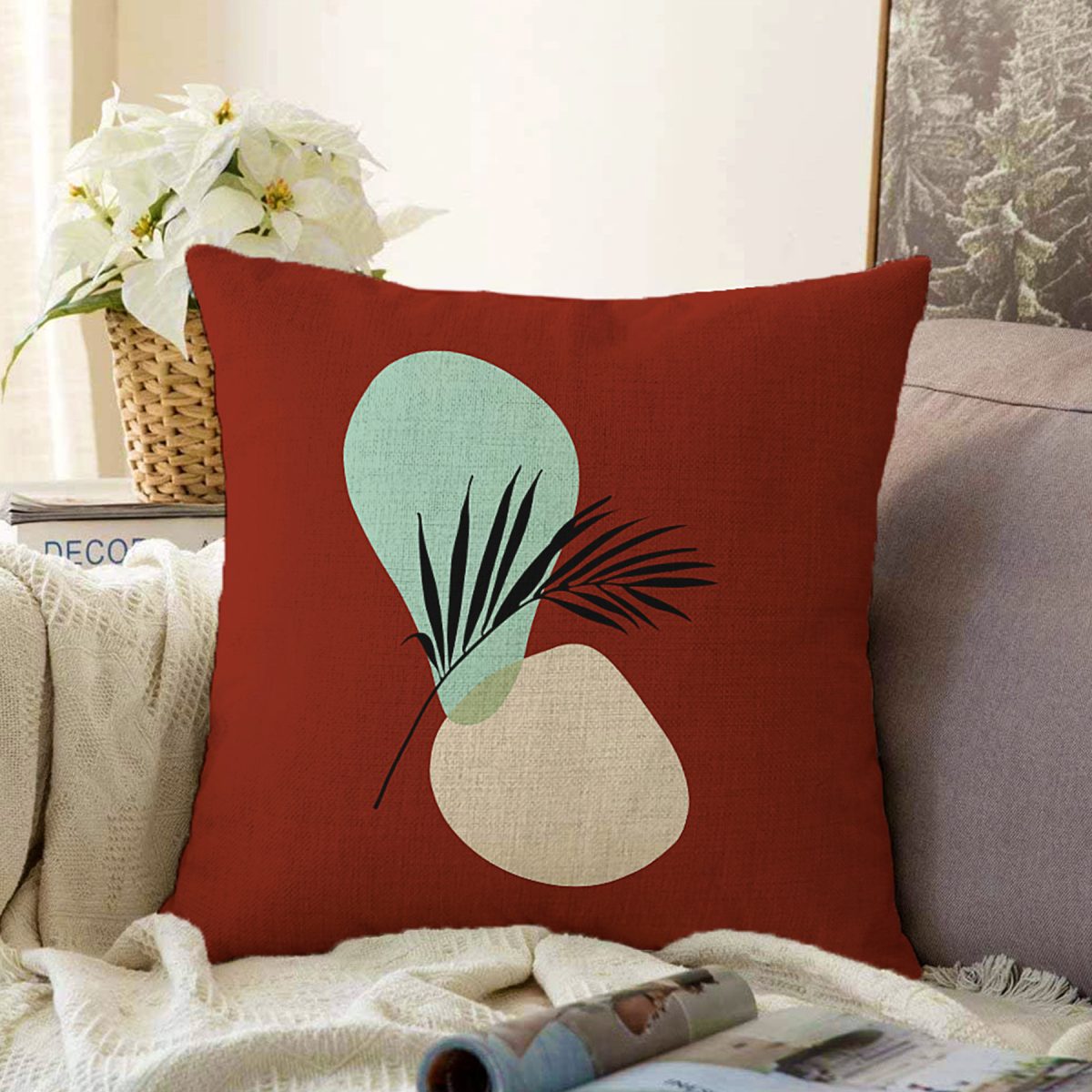 Bordo Zeminli Tropik Yaprak Detaylı Raşel Kadife Yastık Kırlent Kılıfı