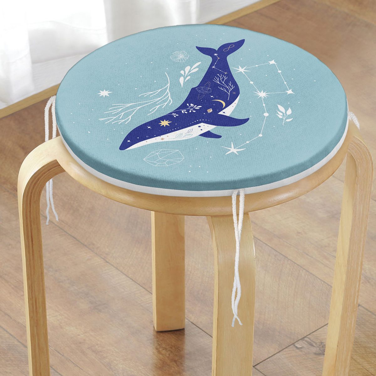 Buz Mavisi Zeminli Balina Desenli Modern Yuvarlak Fermuarlı Sandalye Minderi