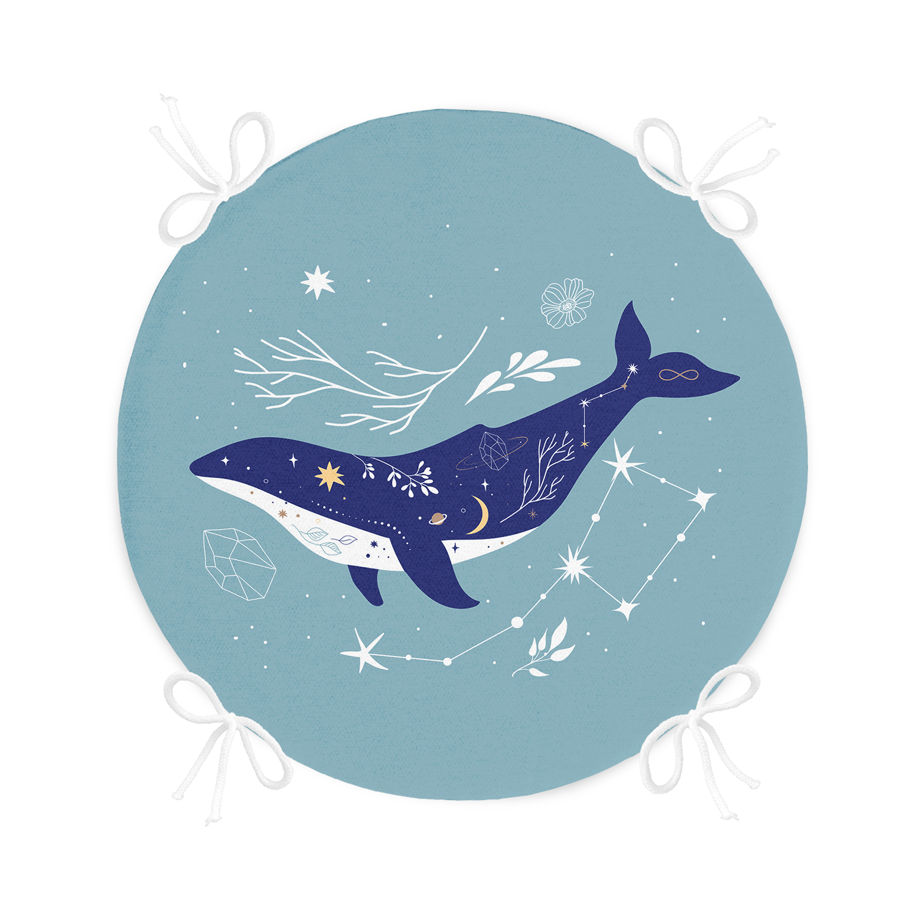 Buz Mavisi Zeminli Balina Desenli Modern Yuvarlak Fermuarlı Sandalye Minderi Realhomes