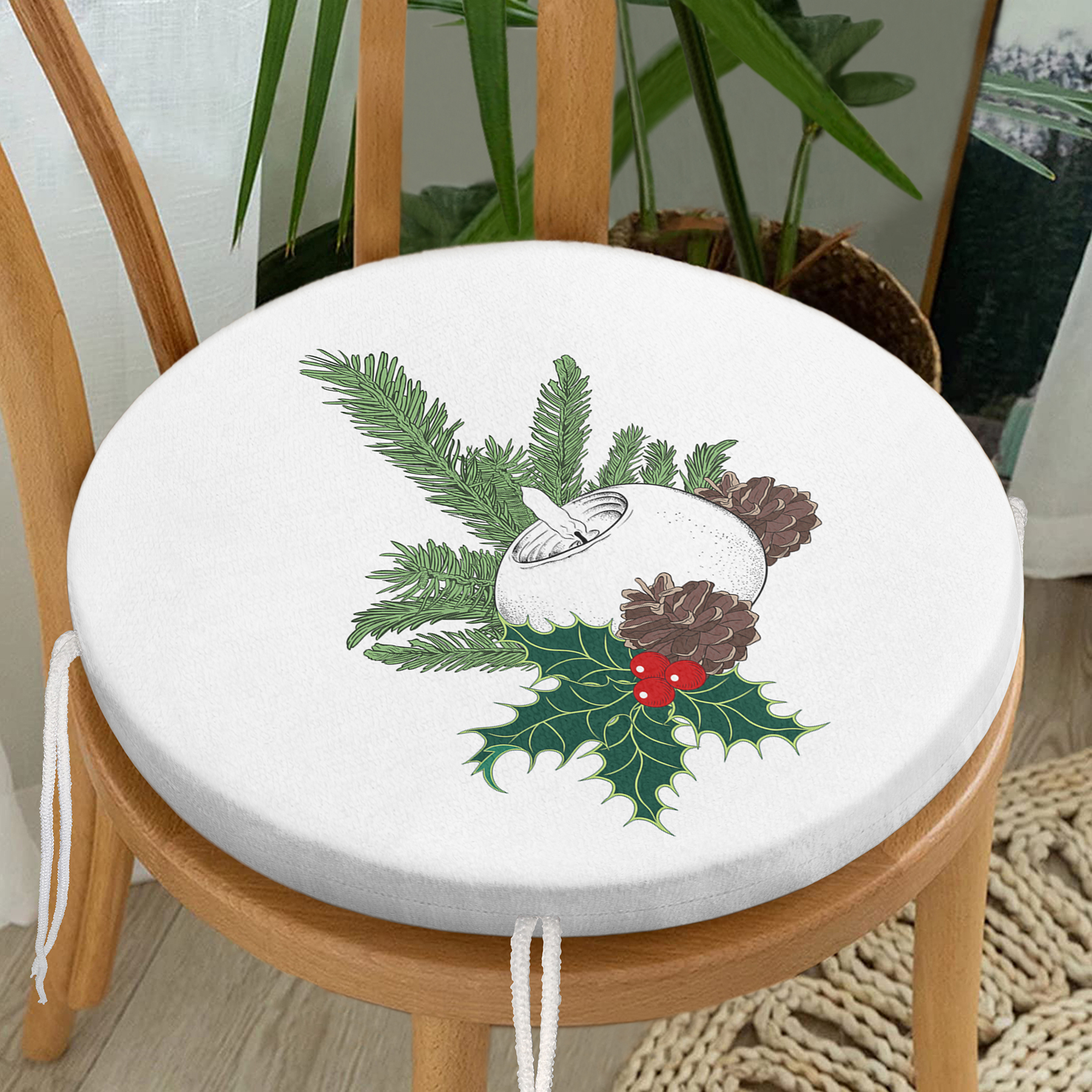 Çam Ağacı Yaprakları İçinde Mumluk Tasarımlı Dijital Baskılı Yuvarlak Fermuarlı Sandalye Minderi