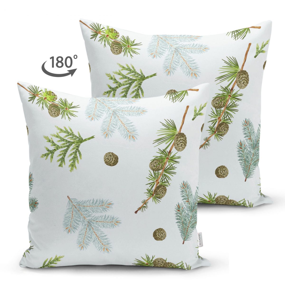 Çam Dalı Motifli Dijital Baskılı Çift Taraflı Süet Yastık Kırlent Kılıfı Realhomes