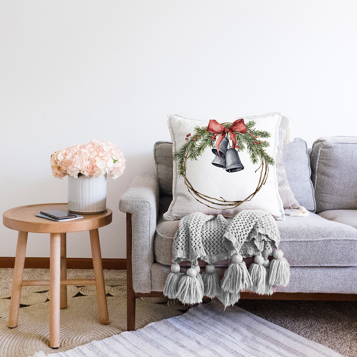 Çanlı Çelenk Tasarımlı Dijital Baskılı Modern Raşel Kadife Yastık Kırlent Kılıfı