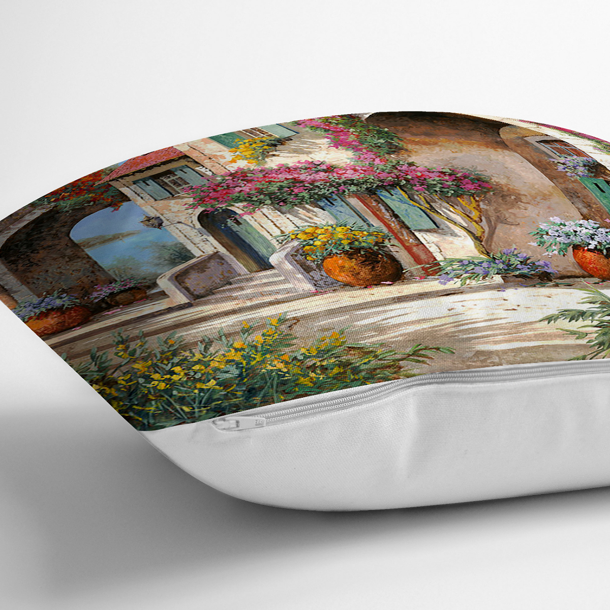 Çiçek Sokağı Dijital Baskılı Dekoratif Yastık Kırlent Kılıfı