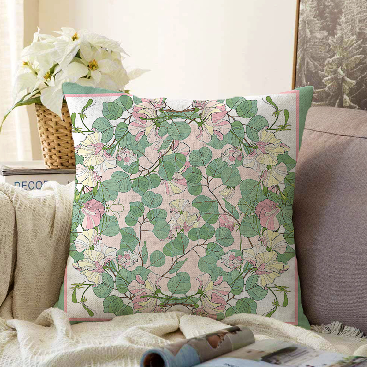 Çiçek Ve Yaprak Motifli Özel Tasarım Dijital Baskılı Modern Raşel Kadife Yastık Kırlent Kılıfı