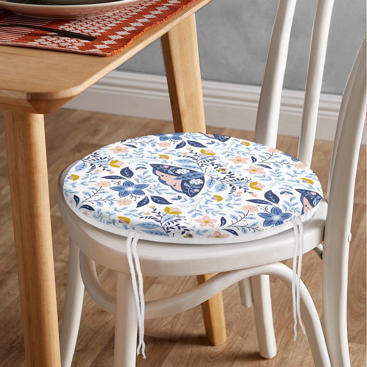 Çiçekli Özel Tasarım Dijital Baskılı Yuvarlak Fermuarlı Sandalye Minderi Realhomes