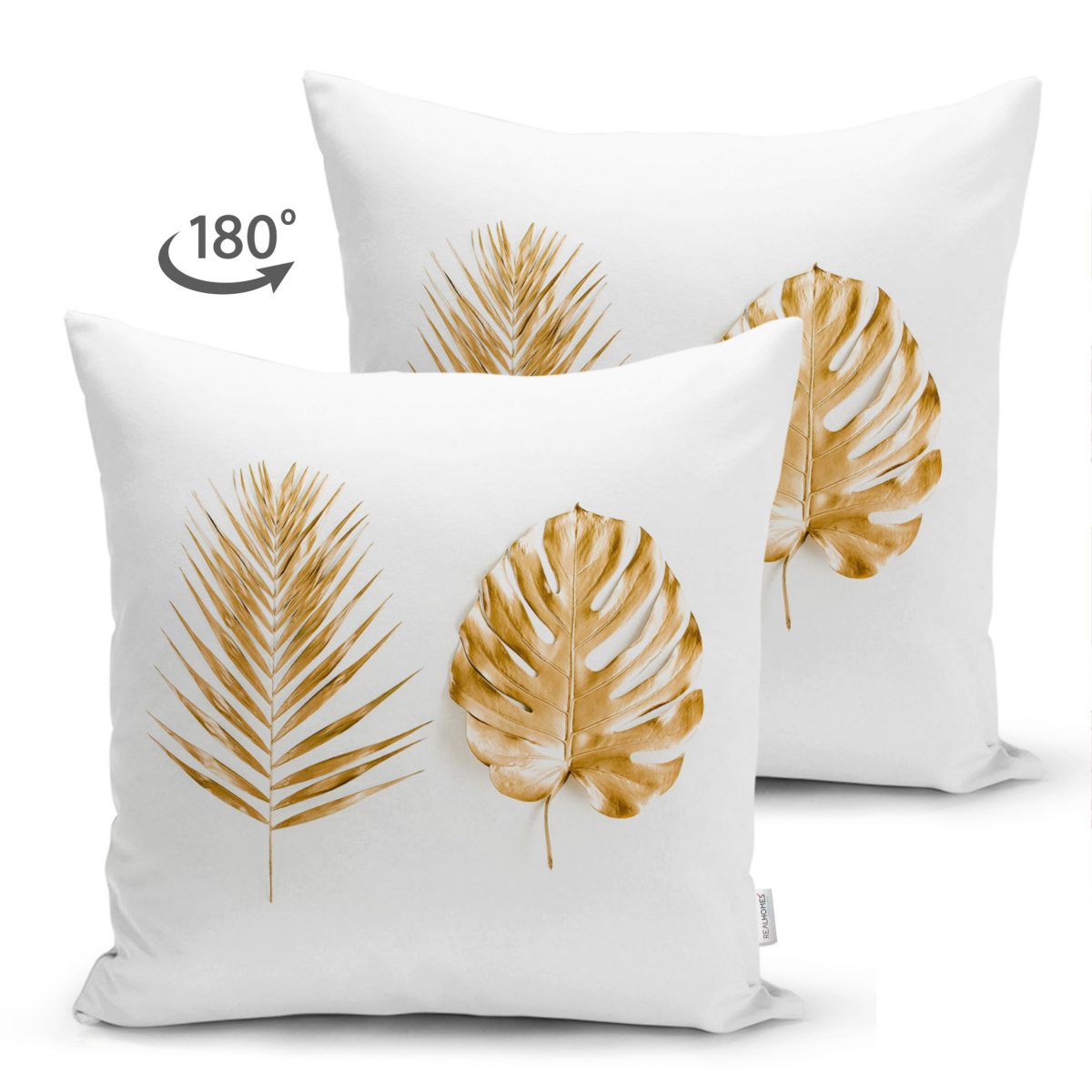 Çift Taraflı 3D Altın Görünümlü Palmiye Yaprakları Modern Süet Yastık Kırlent Kılıfı