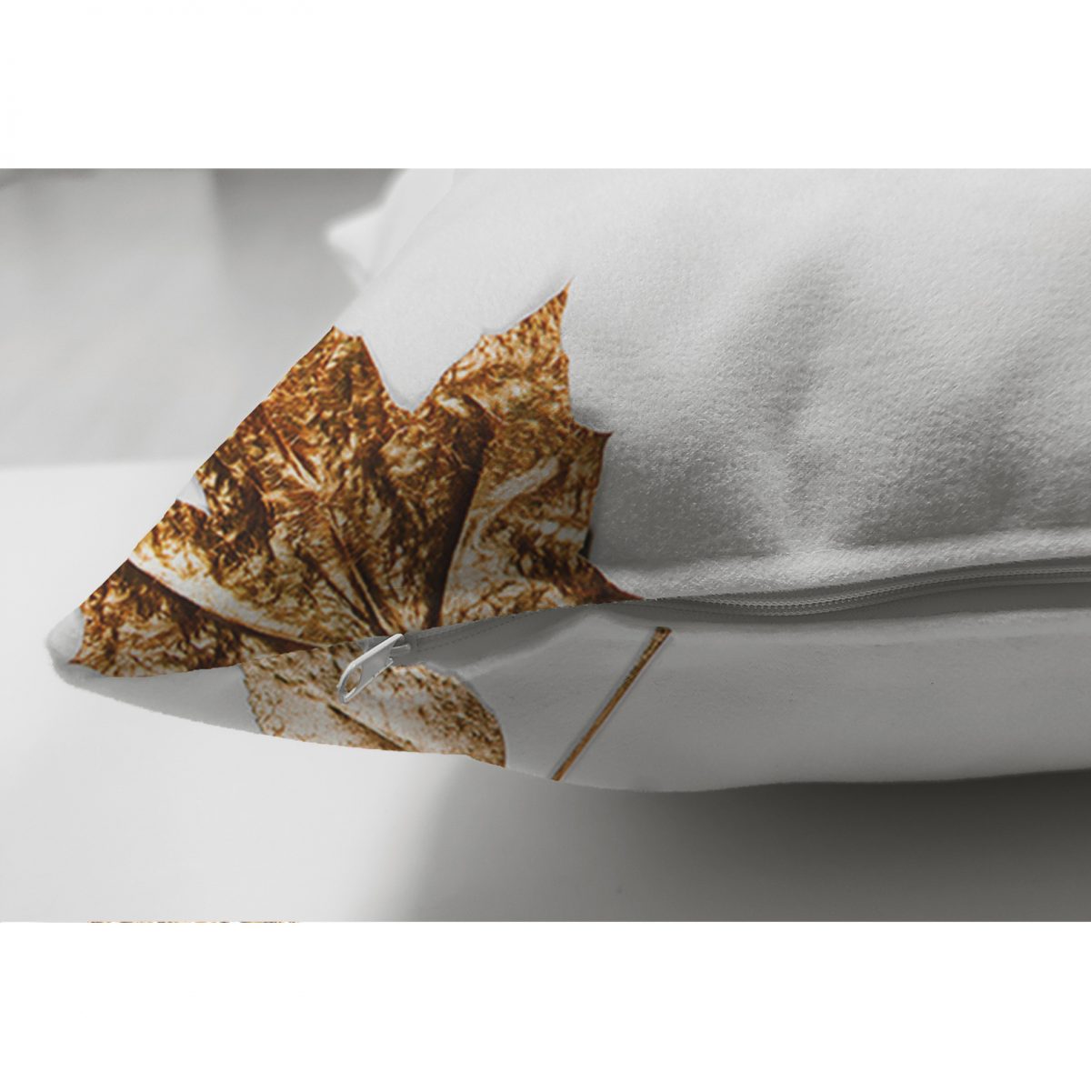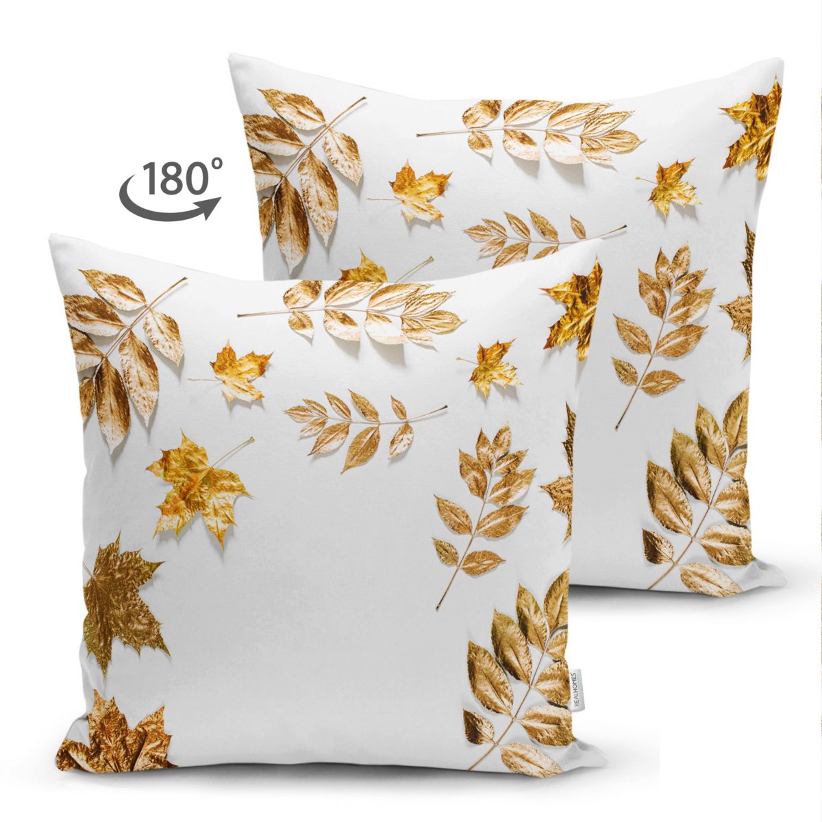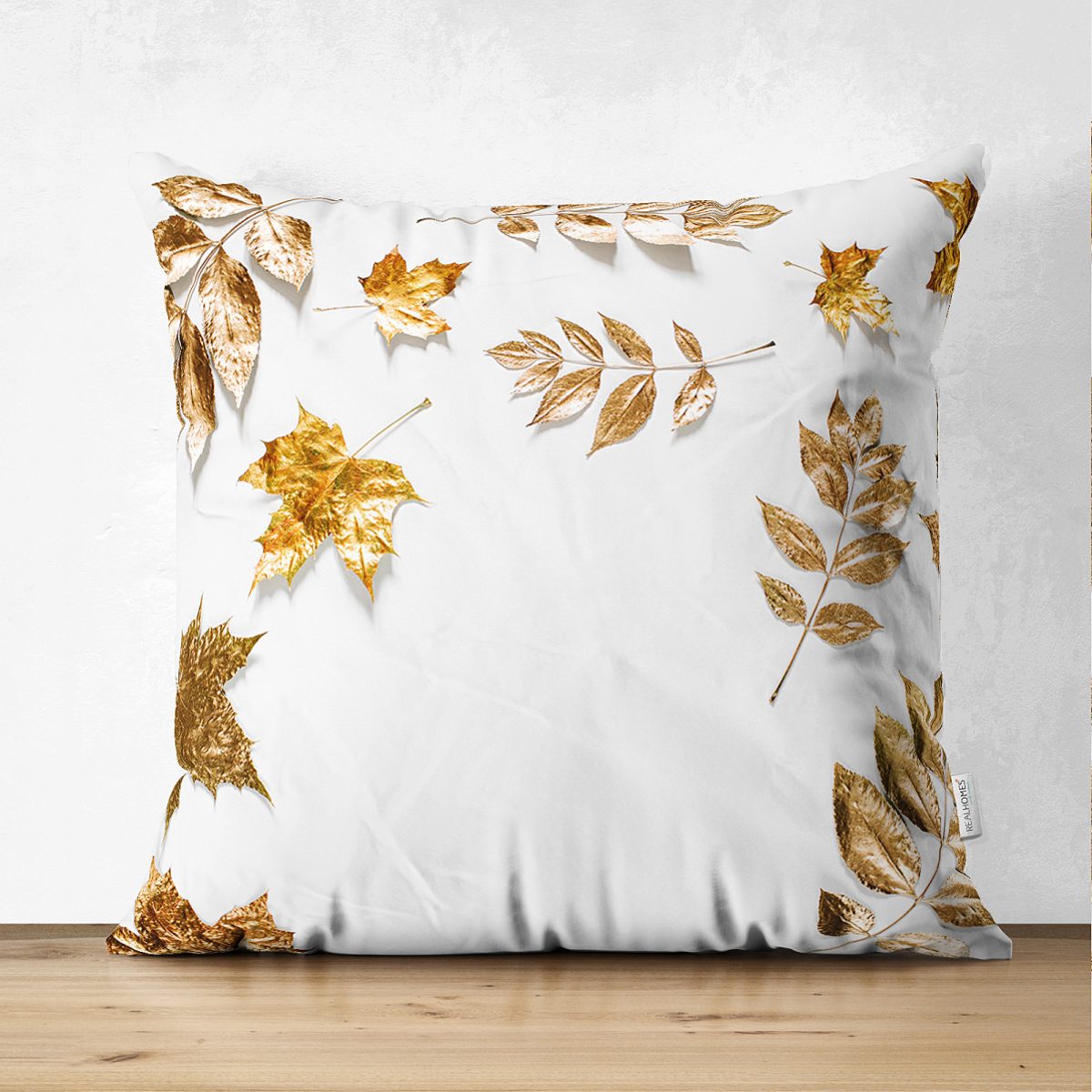 Çift Taraflı 3D Altın Renkli Yapraklar Desenli Dekoratif Süet Yastık Kırlent Kılıfı