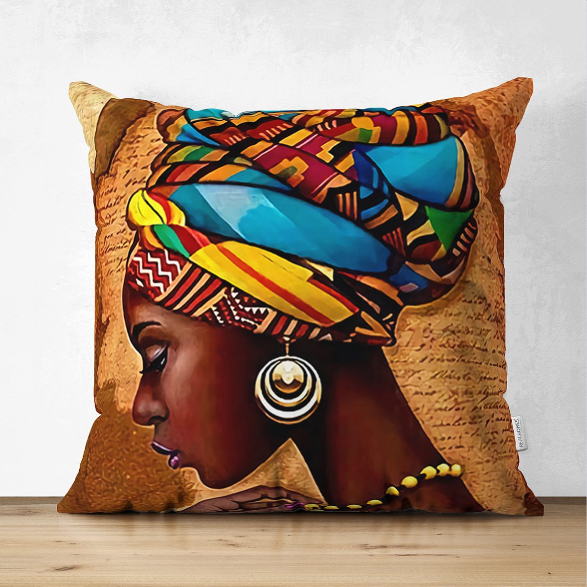Çift Taraflı African Woman Çizimli Dijital Baskılı Modern Süet Yastık Kırlent Kılıfı