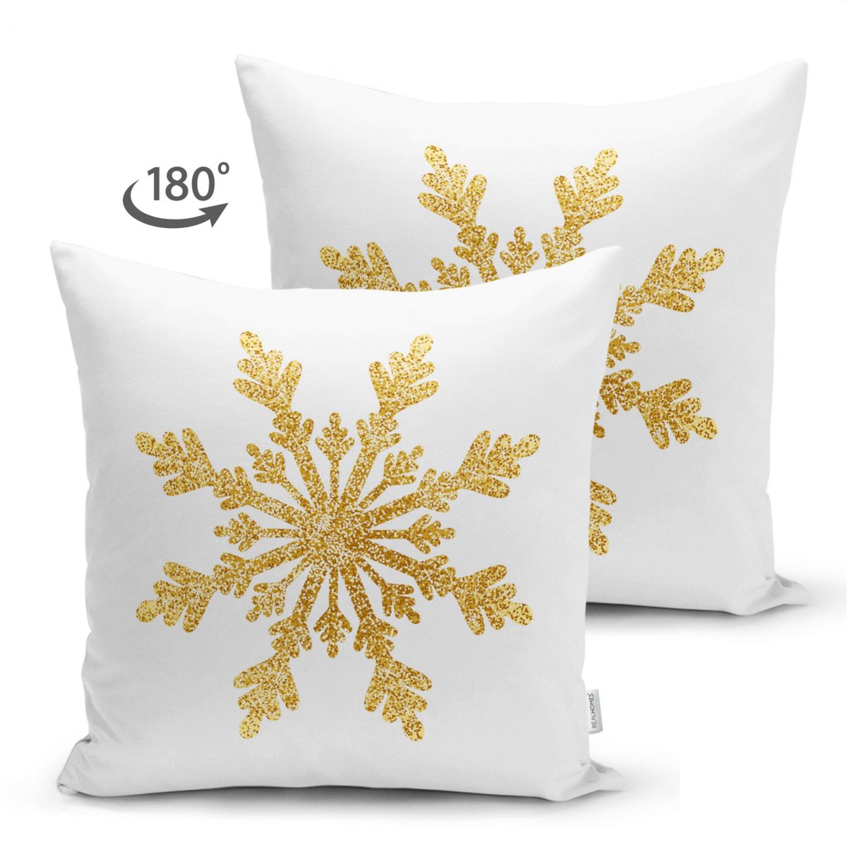 Çift Taraflı Altın Görünümlü Kar Tanesi Desenli 3D Modern Süet Yastık Kırlent Kılıfı Realhomes