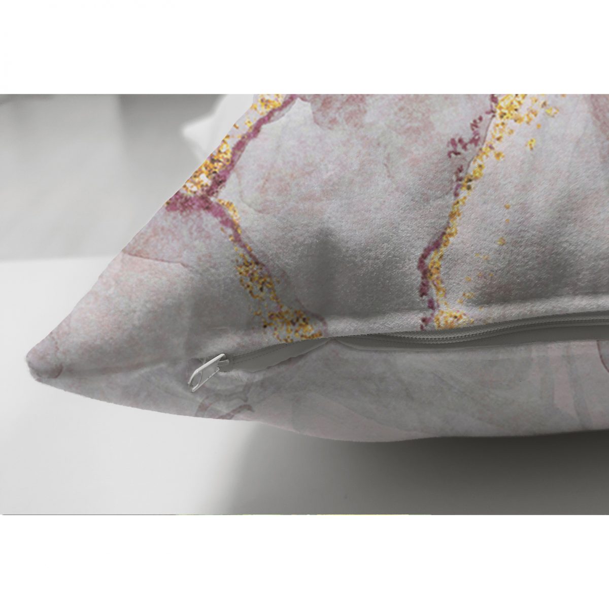 Çift Taraflı Altın Yaldız Çizgili Mermer Desenli Dekoratif Süet Yastık Kırlent Kılıfı Realhomes