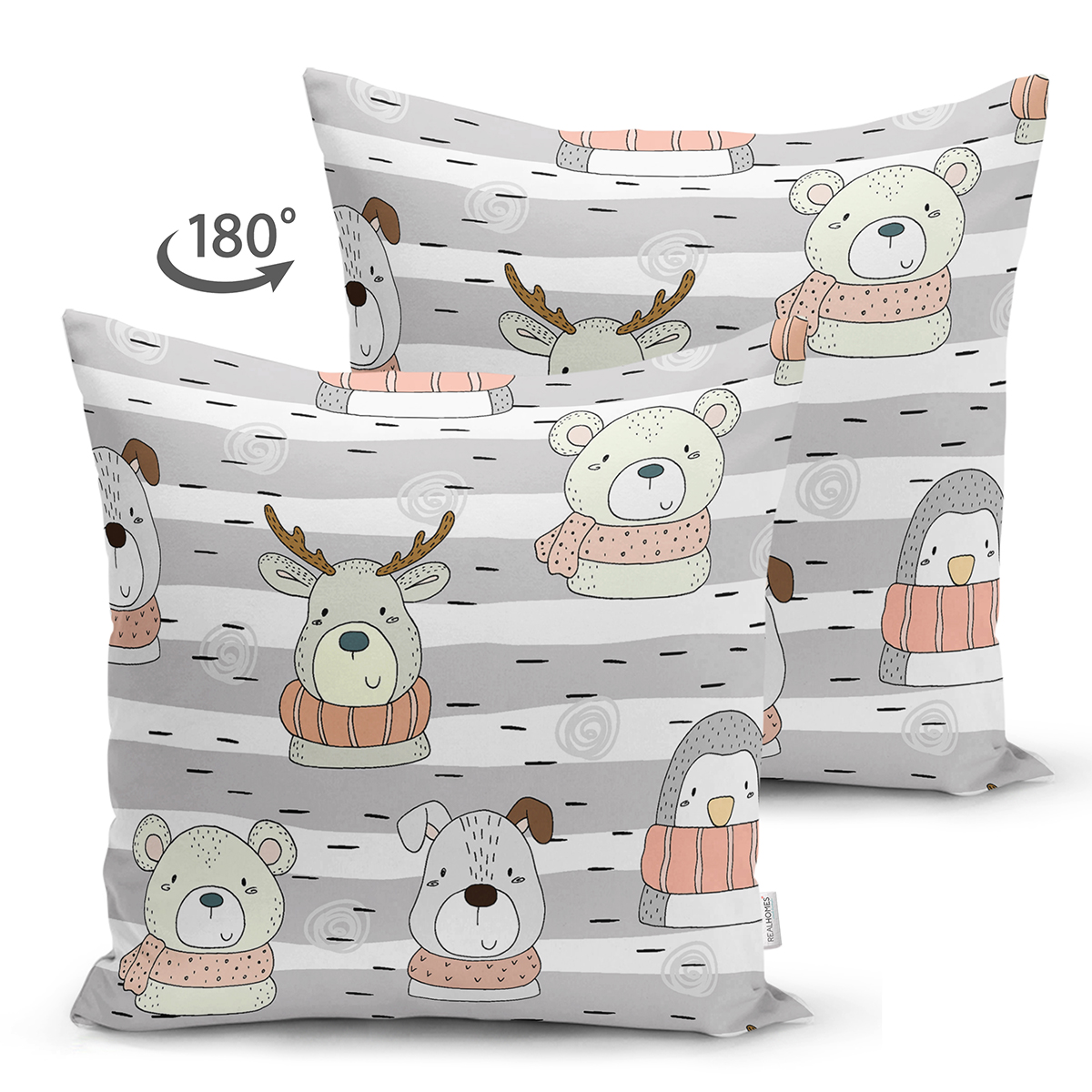 Çift Taraflı Atkılı Sevimli Hayvanlar Temalı Dijital Baskılı Özel Tasarım Modern Süet Yastık Kırlent Kılıfı