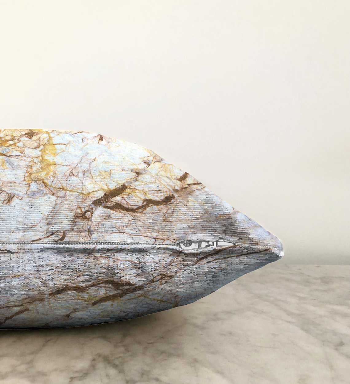 Beyaz Mermer Desenli Dijital Baskılı Raşel Kadife Yastık Kırlent Kılıfı