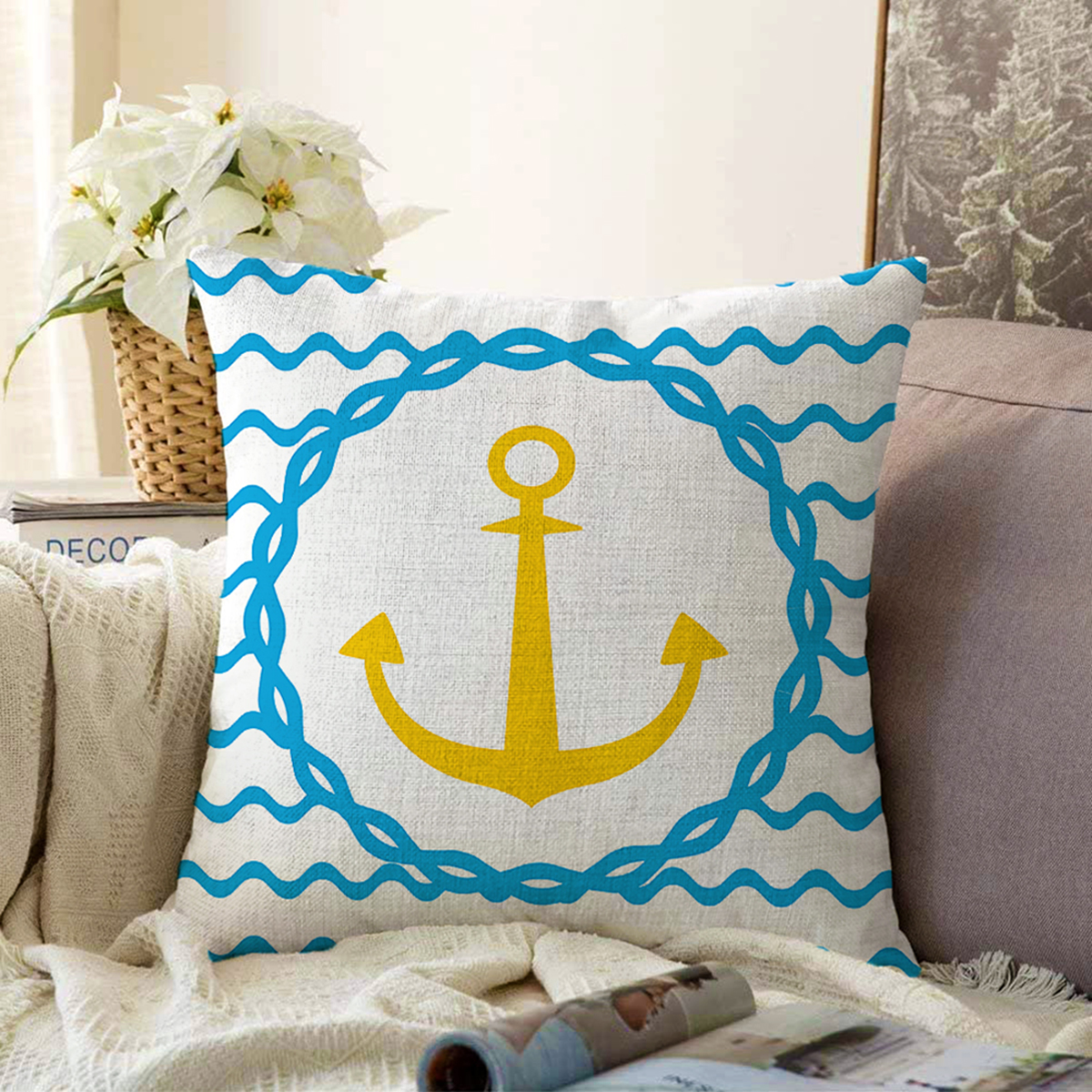 Beyaz Zemin Üzerinde Çapa Desenli Dijital Baskılı Modern Raşel Kadife Yastık Kırlent Kılıfı