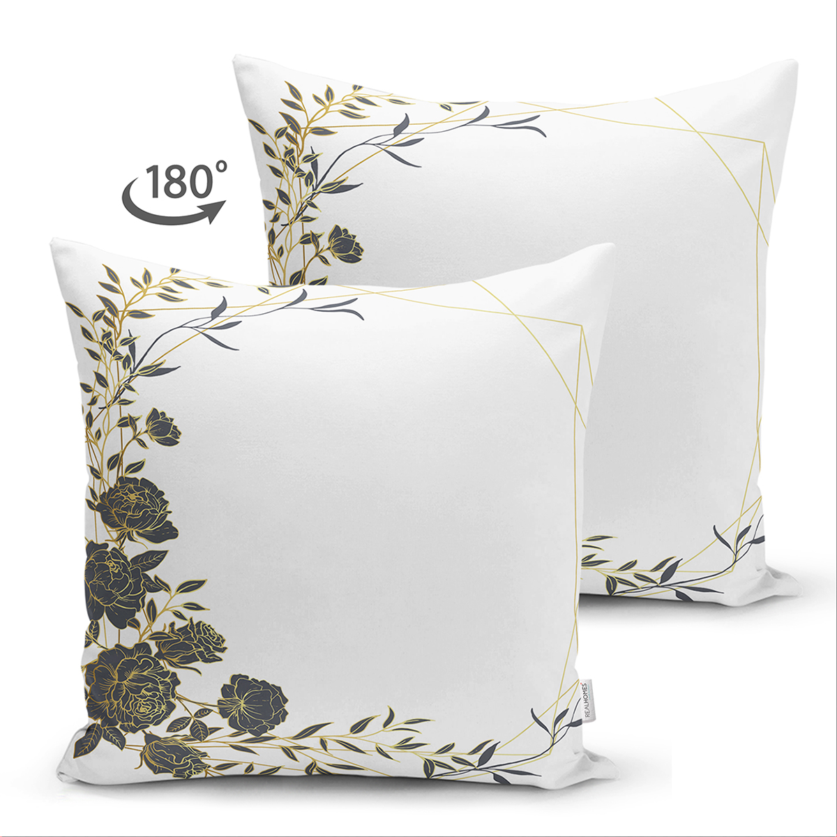 Çift Taraflı Beyaz Zemin Üzerinde Gold Detaylı Yaprak Desenli Modern Süet Yastık Kırlent Kılıfı Realhomes