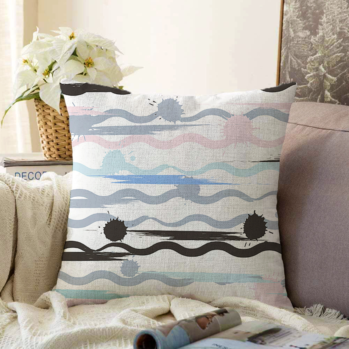 Beyaz Zemin Üzerinde Modern Çizgili Zigzag Desen Modern Raşel Kadife Yastık Kırlent Kılıfı