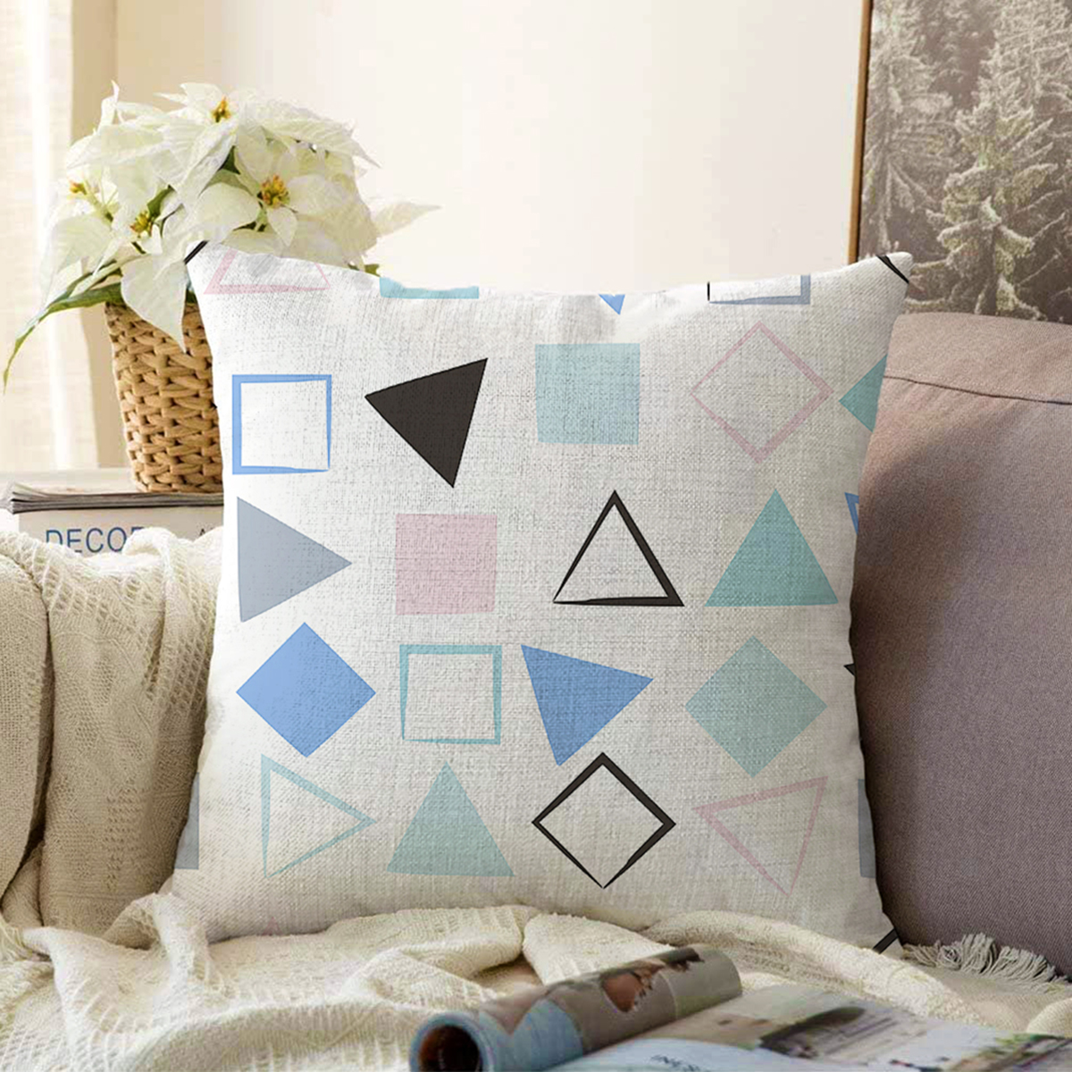 Beyaz Zemin Üzerinde Renkli Geometrik Desenli Dijital Baskılı Modern Raşel Kadife Yastık Kılıfı