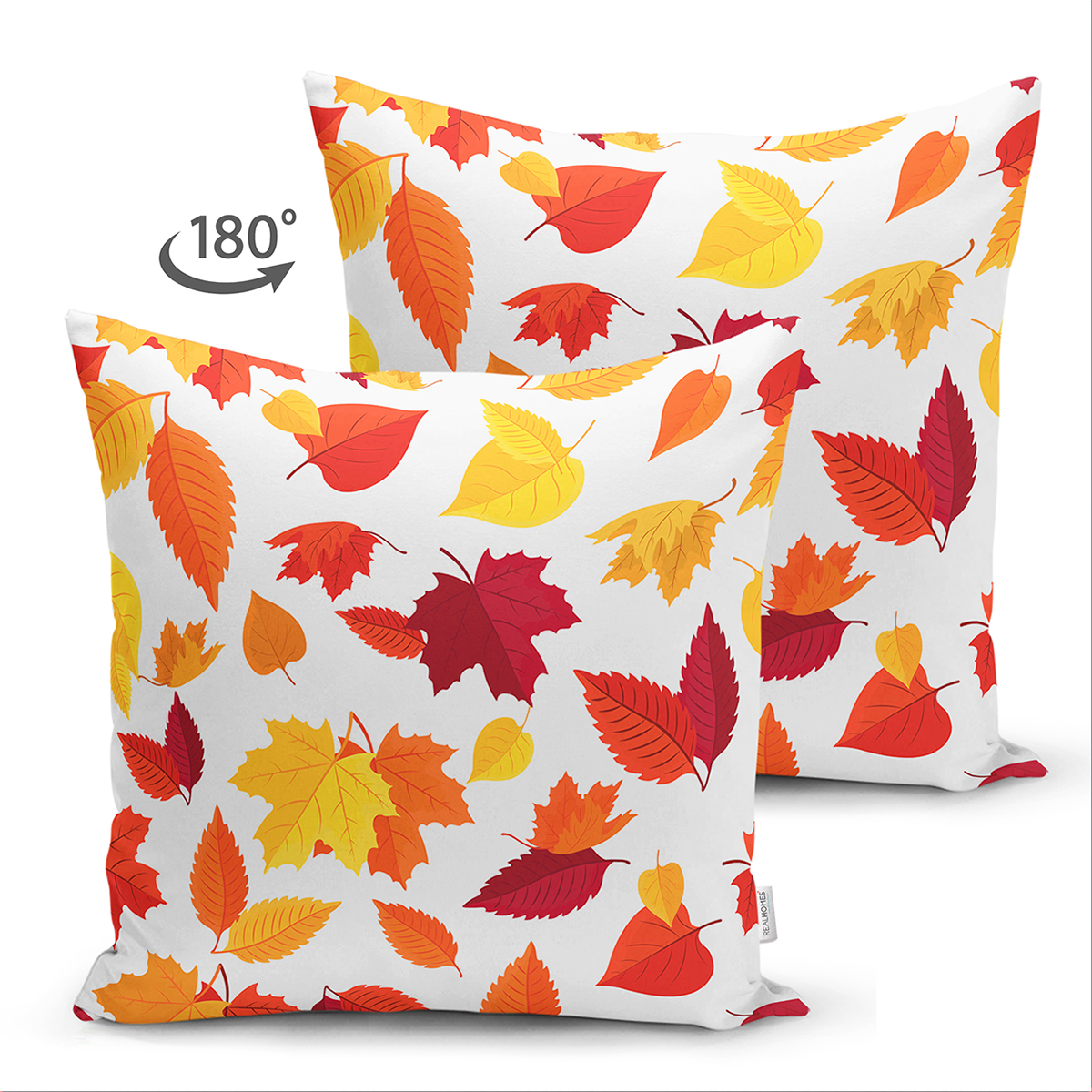 Çift Taraflı Beyaz Zemin Üzerinde Sonbahar Renkli Yaprak Desenli Süet Yastık Kırlent Kılıfı Realhomes