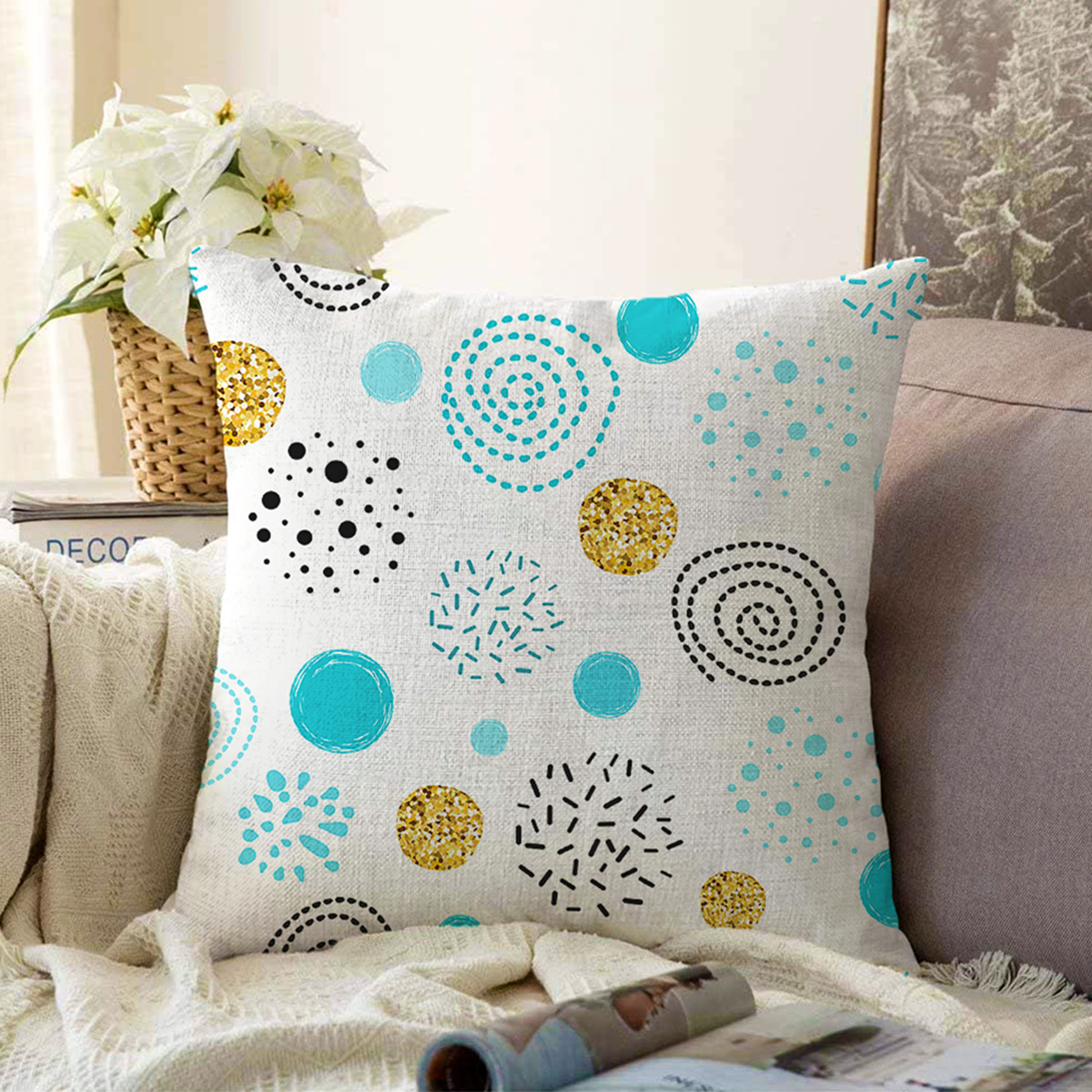 Beyaz Zeminde Mavi Gold Puanlı Dijital Baskılı Modern Raşel Kadife Yastık Kırlent Kılıfı