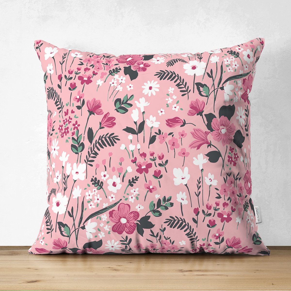Çift Taraflı Çiçek Temalı Dijital Baskılı Süet Yastık Kırlent Kılıfı