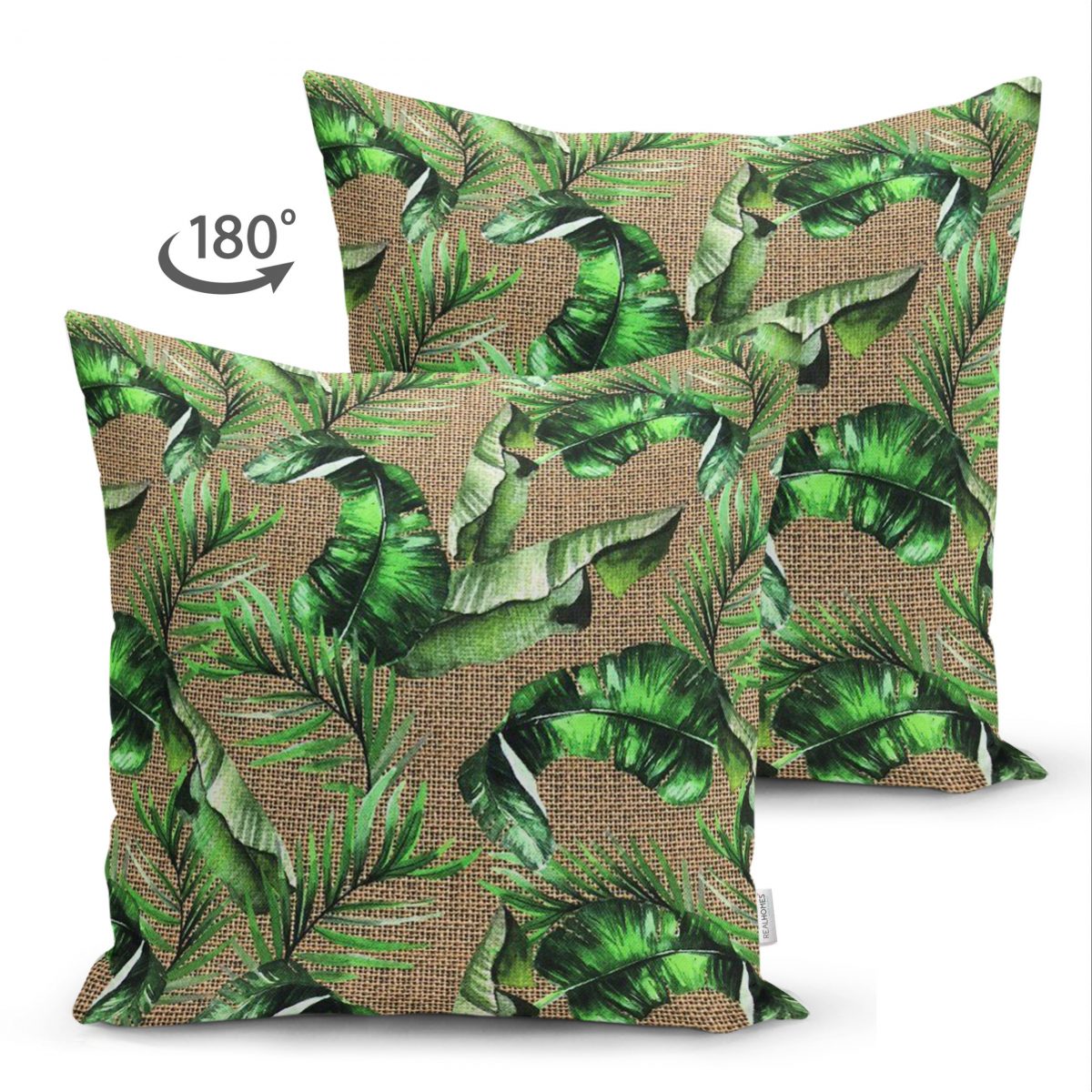 Çift Taraflı Çuval Zeminde Yeşil Yaprak Desenli Özel Tasarım Süet Yastık Kırlent Kılıfı Realhomes
