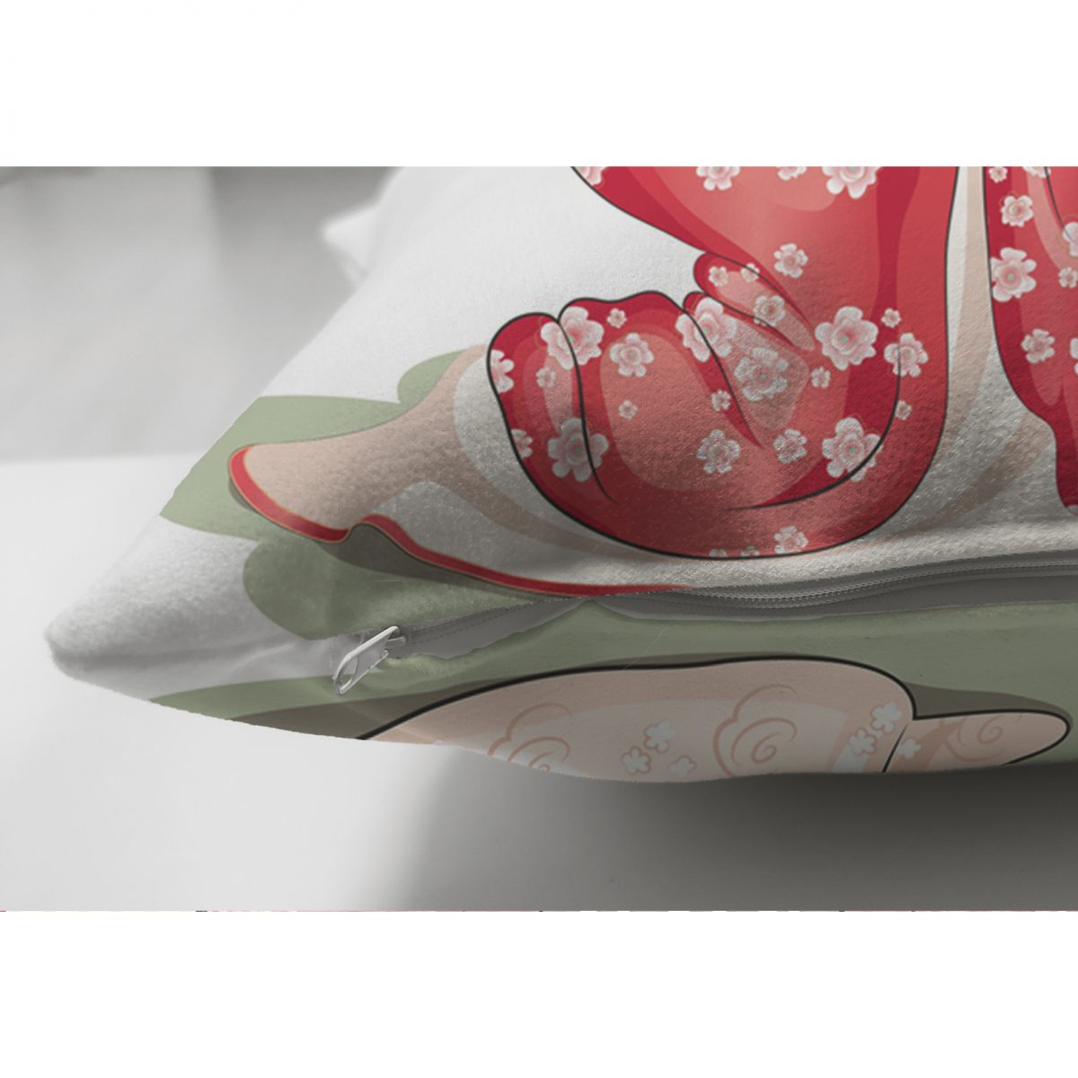 Çift Taraflı Dal Detaylı Şemsiyeli Japon Kızlar Modern Süet Kırlent Kılıfı Realhomes