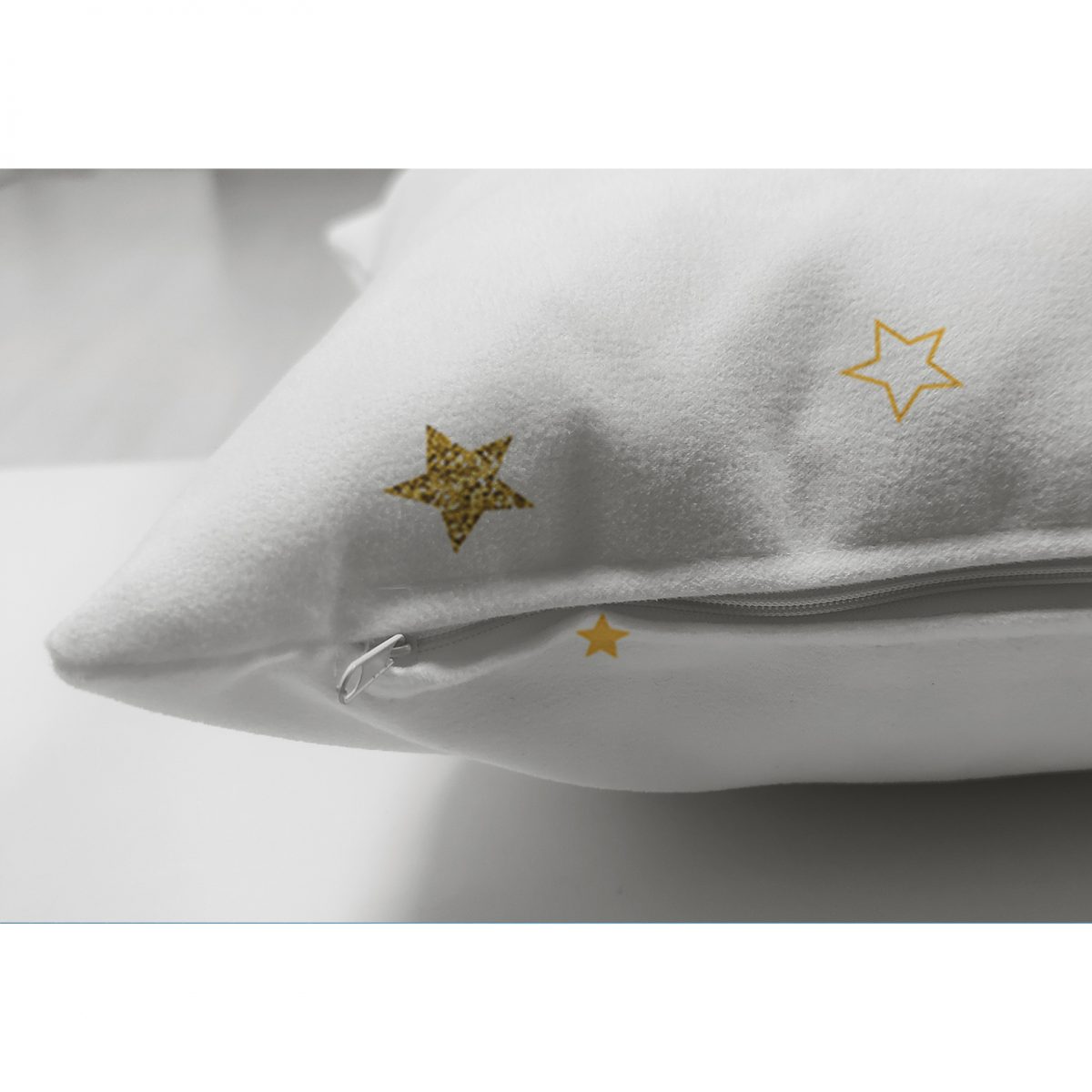 Çift Taraflı Dream Big Little One Yazılı Yıdız Desenli Dijital Baskılı Süet Kırlent Kılıfı