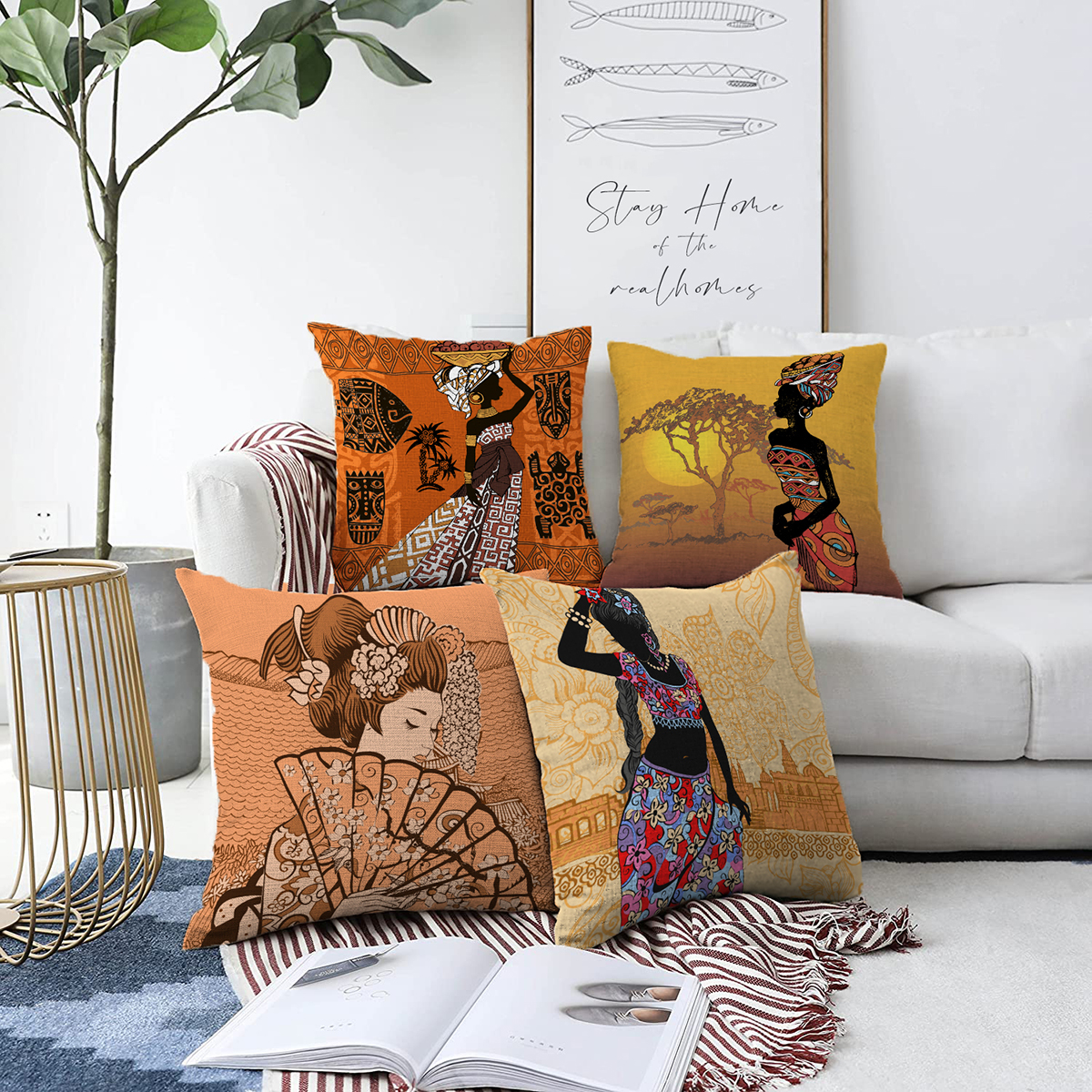 Çift Taraflı Etnik Afrika Women Desenli 4’Lü Şönil Kırlent Kılıf Seti