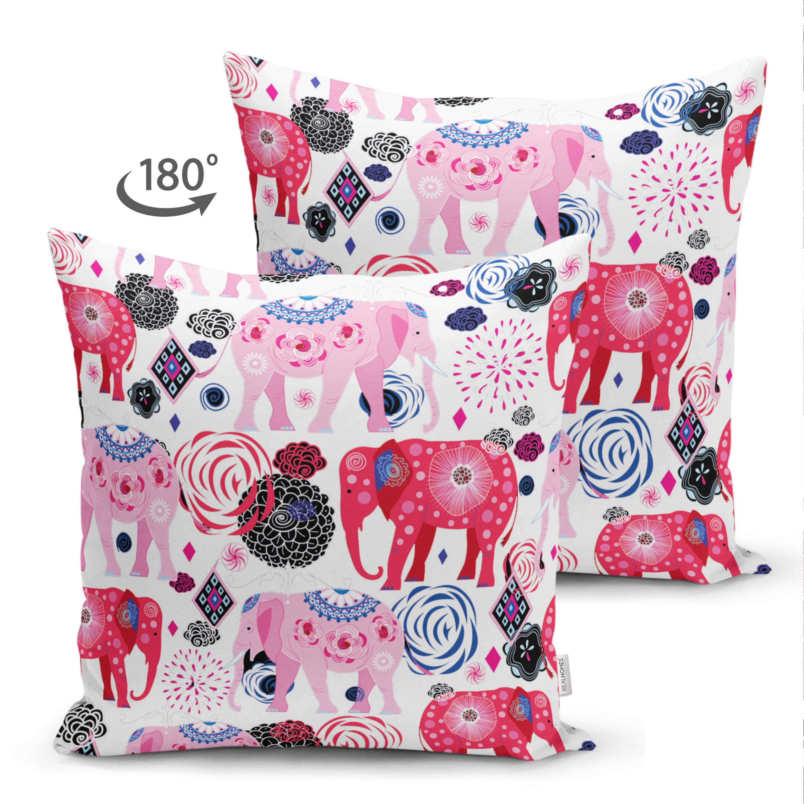 Çift Taraflı Etnik Filler Özel Tasarımlı Dijital Baskılı Süet Yastık Kırlent Kılıfı Realhomes