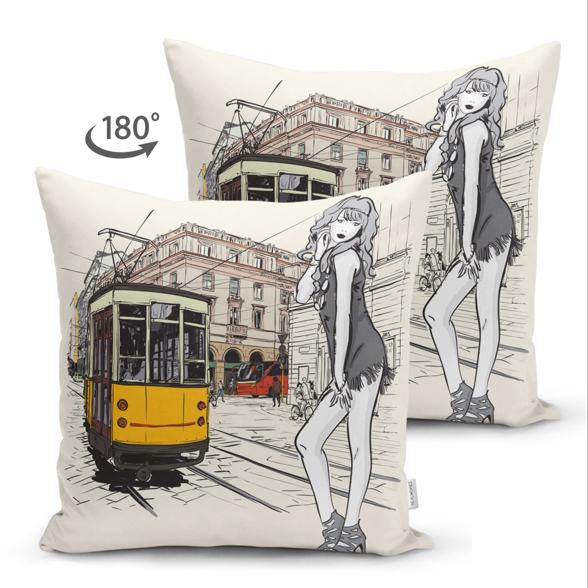 Çift Taraflı Fashion Girl Dijital Baskılı Dekoratif Süet Yastık Kırlent Kılıfı Realhomes