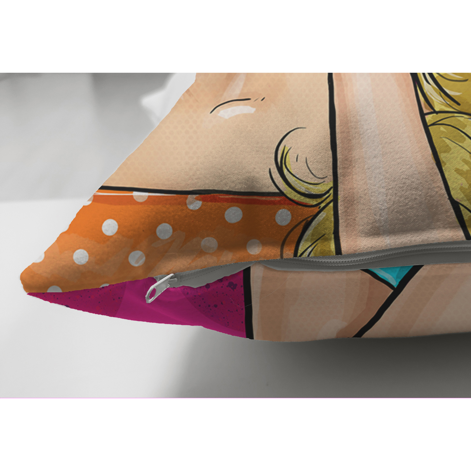 Çift Taraflı Fashion Girl Dijital Baskılı Modern Süet Yastık Kırlent Kılıfı