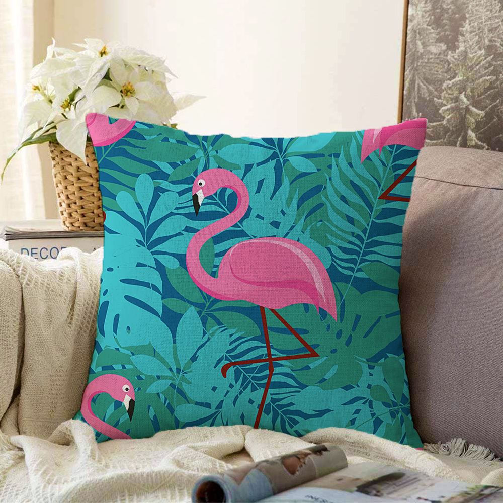 Flamingo Desenli Dijital Baskılı Raşel Kadife Yastık Kırlent Kılıfı