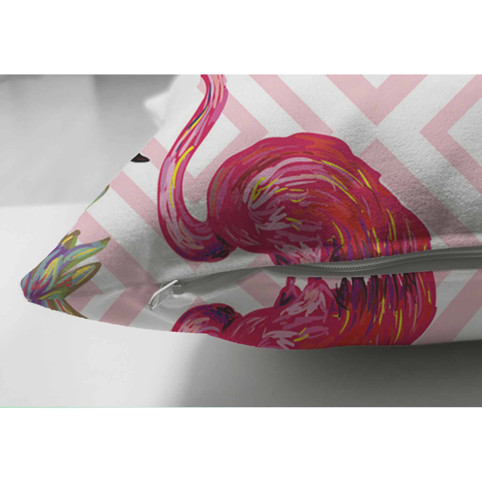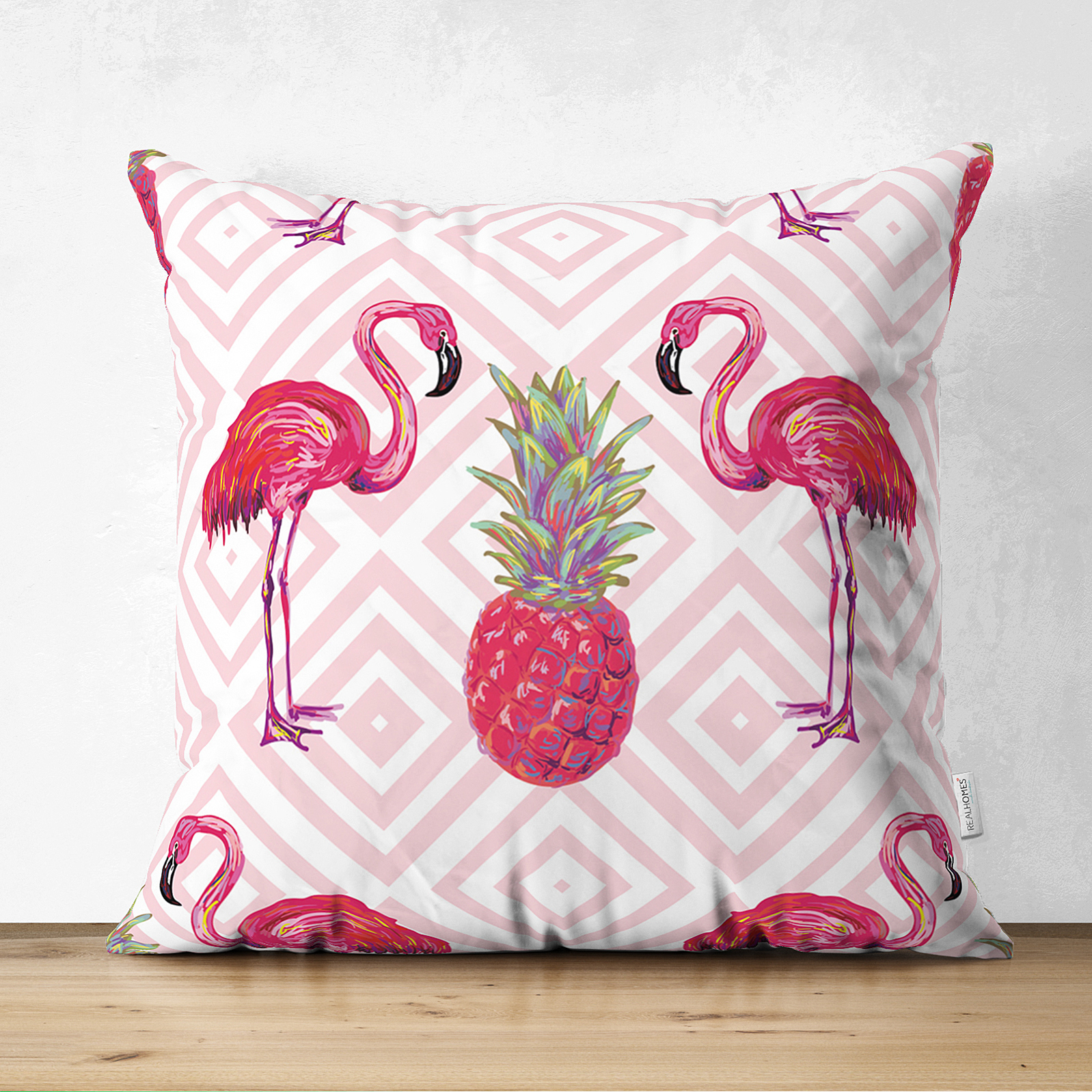Çift Taraflı Flamingo Desenli Dijital Baskılı Süet Yastık Kırlent Kılıfı Realhomes