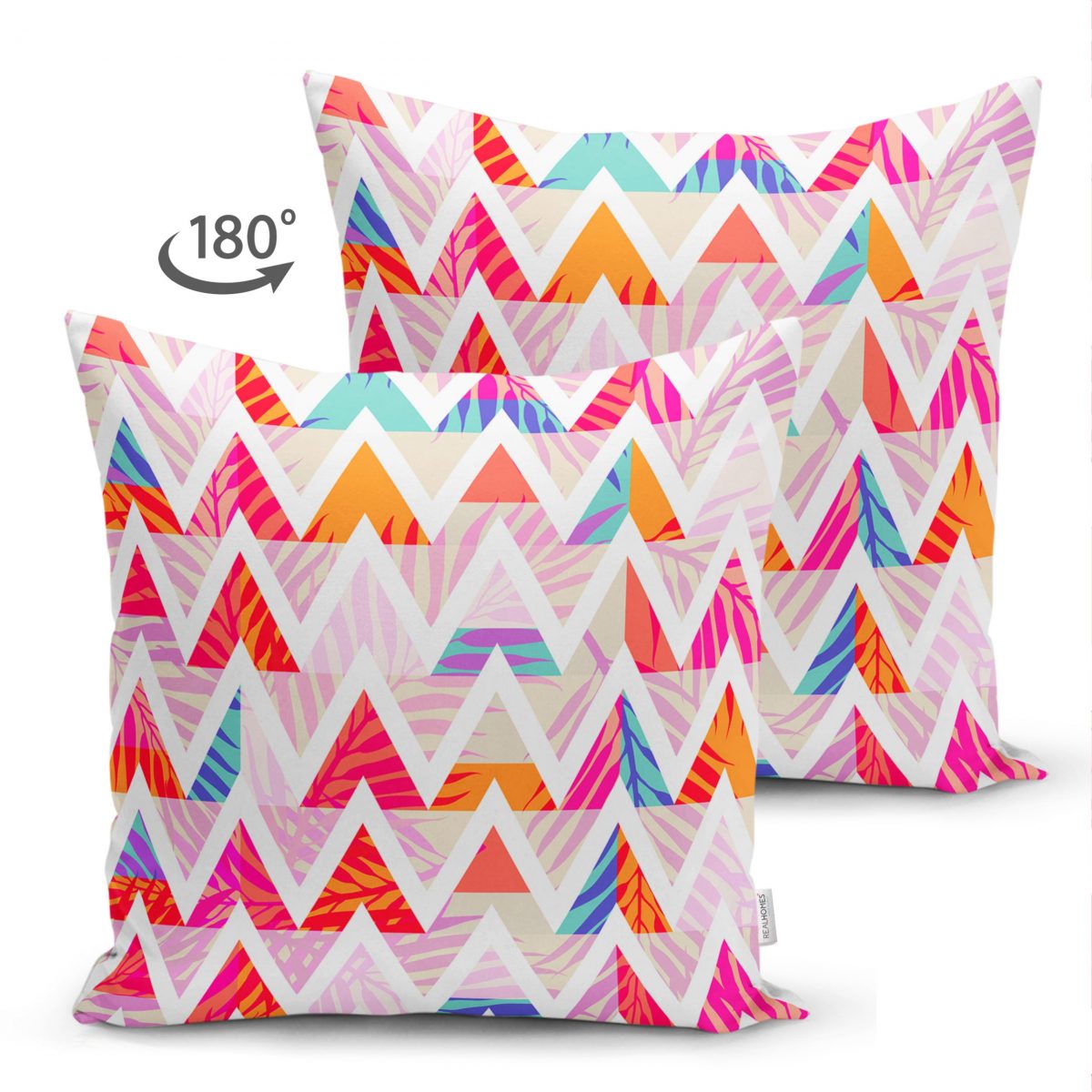 Çift Taraflı Geometrik Desenli Renkli Zeminli Modern Süet Yastık Kırlent Kılıfı