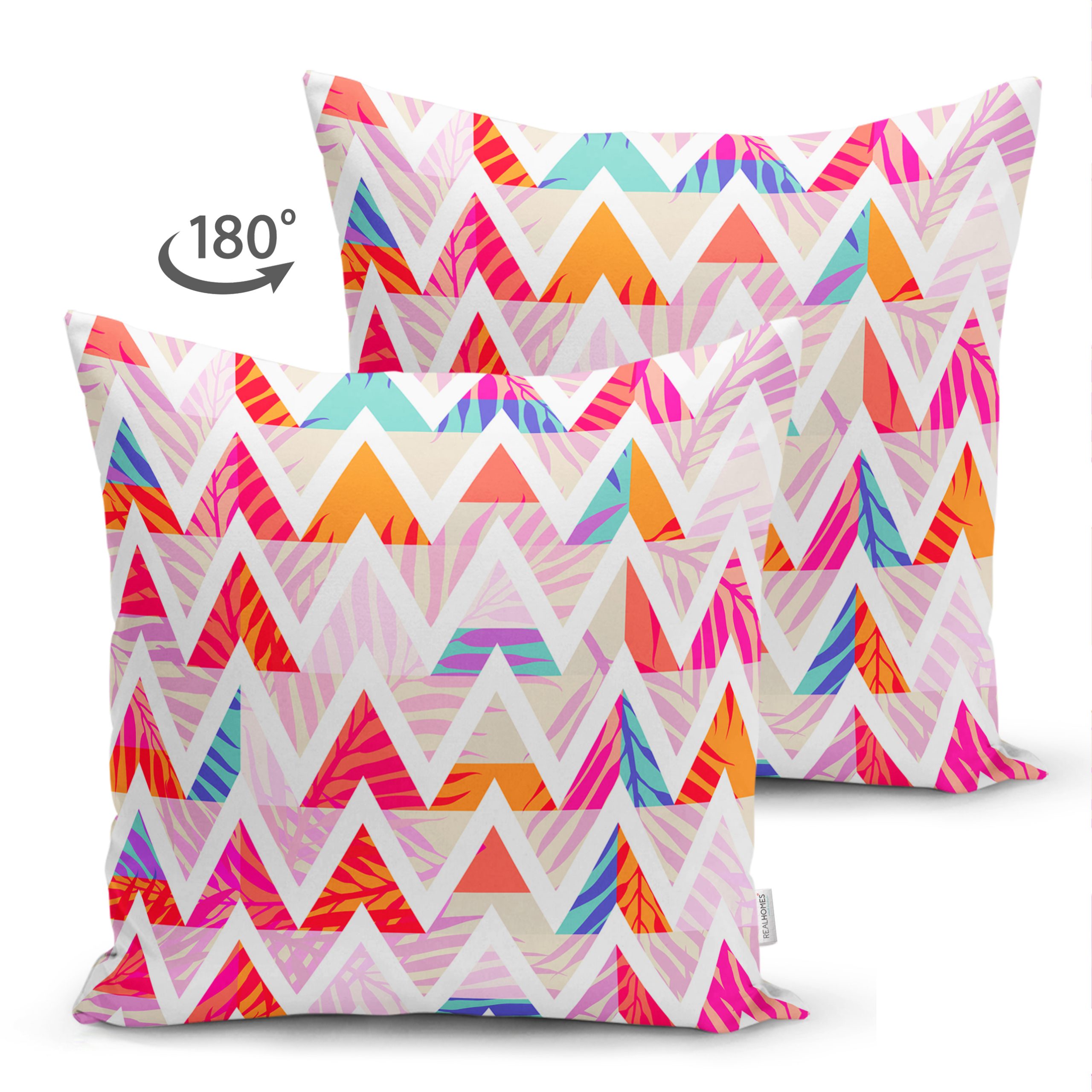 Çift Taraflı Geometrik Desenli Renkli Zeminli Modern Süet Yastık Kırlent Kılıfı Realhomes