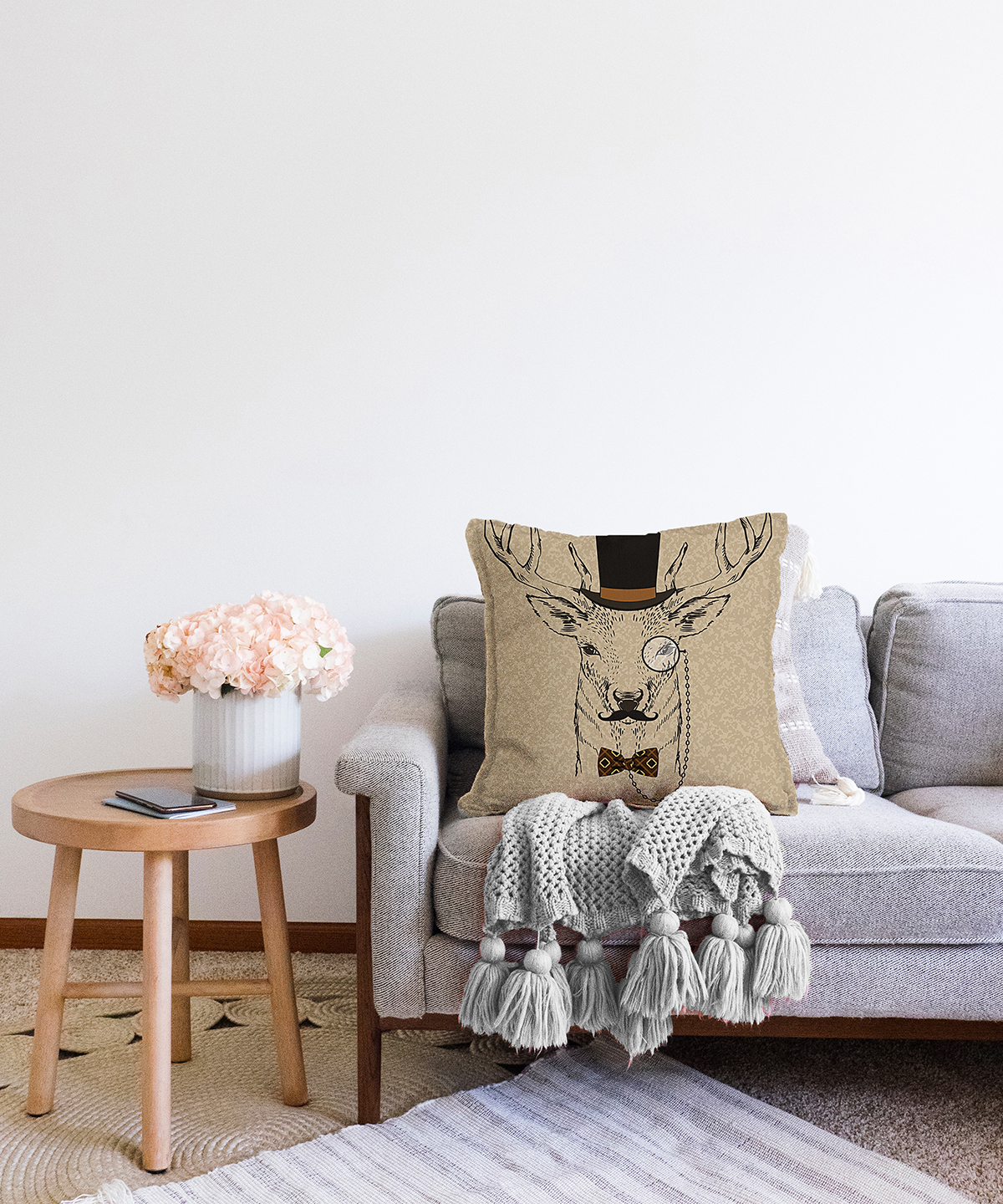 Geyik Desenli Dijital Baskılı Dekoratif Raşel Kadife Yastık Kırlent Kılıfı