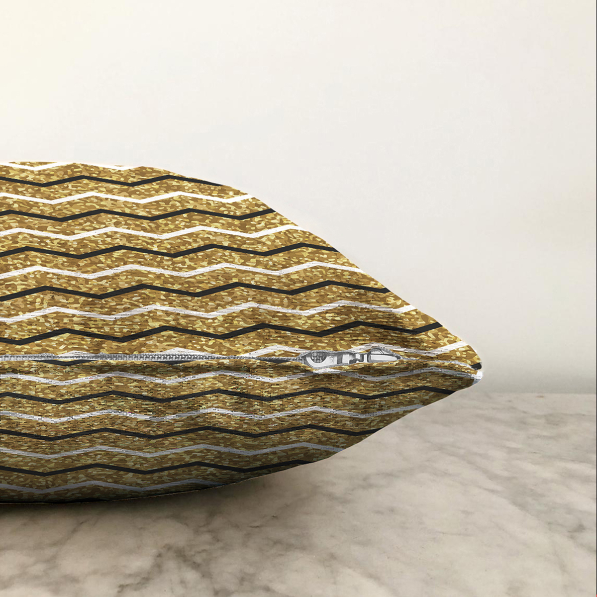 Gold Zemin Üzerinde Modern Renkli Zigzag Desenli Modern Raşel Kadife Yastık Kırlent Kılıfı