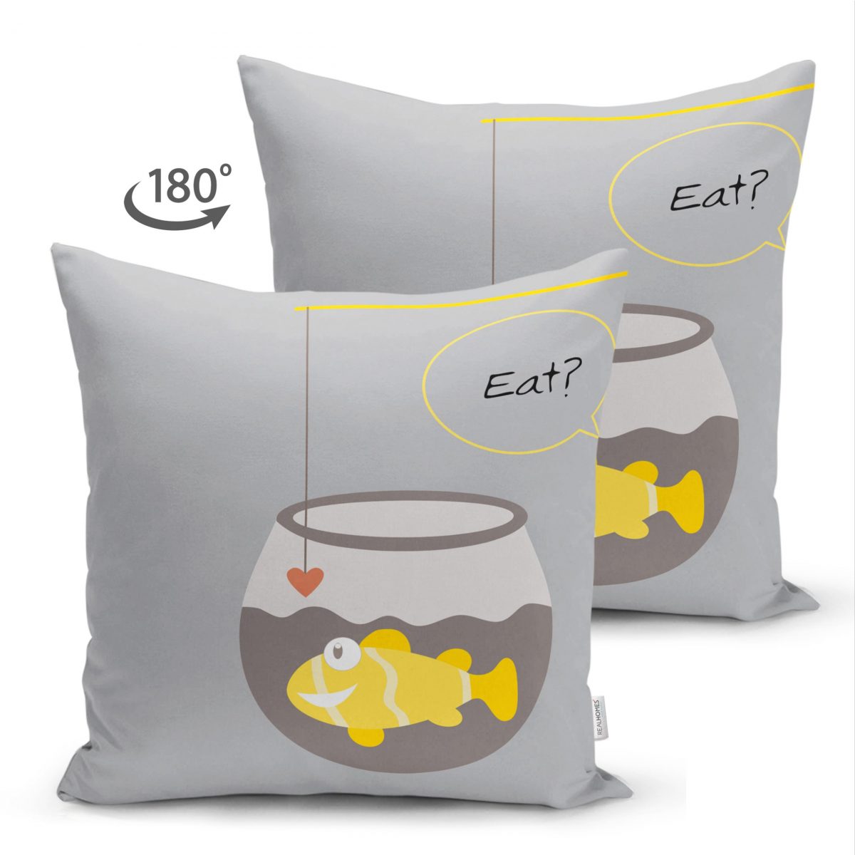 Çift Taraflı Gri Zeminde Akvaryum Temalı Çocuk Odası Süet Yastık Kırlent Kılıfı