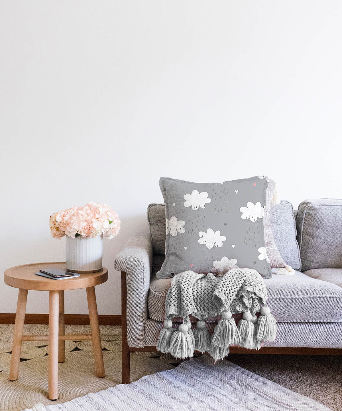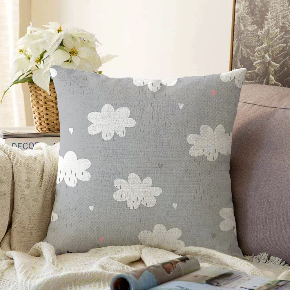 Gri Zeminde Bulutlar Özel Tasarımlı Çocuk Odası Raşel Kadife Yastık Kırlent Kılıfı