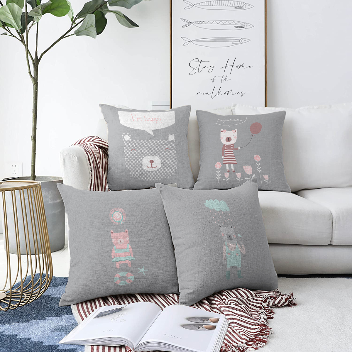 RealHomes Çift Tarafı Dijital Baskılı Şönil 4'lü Yastık Kırlent Kılıfı Seti - 55 x 55 cm