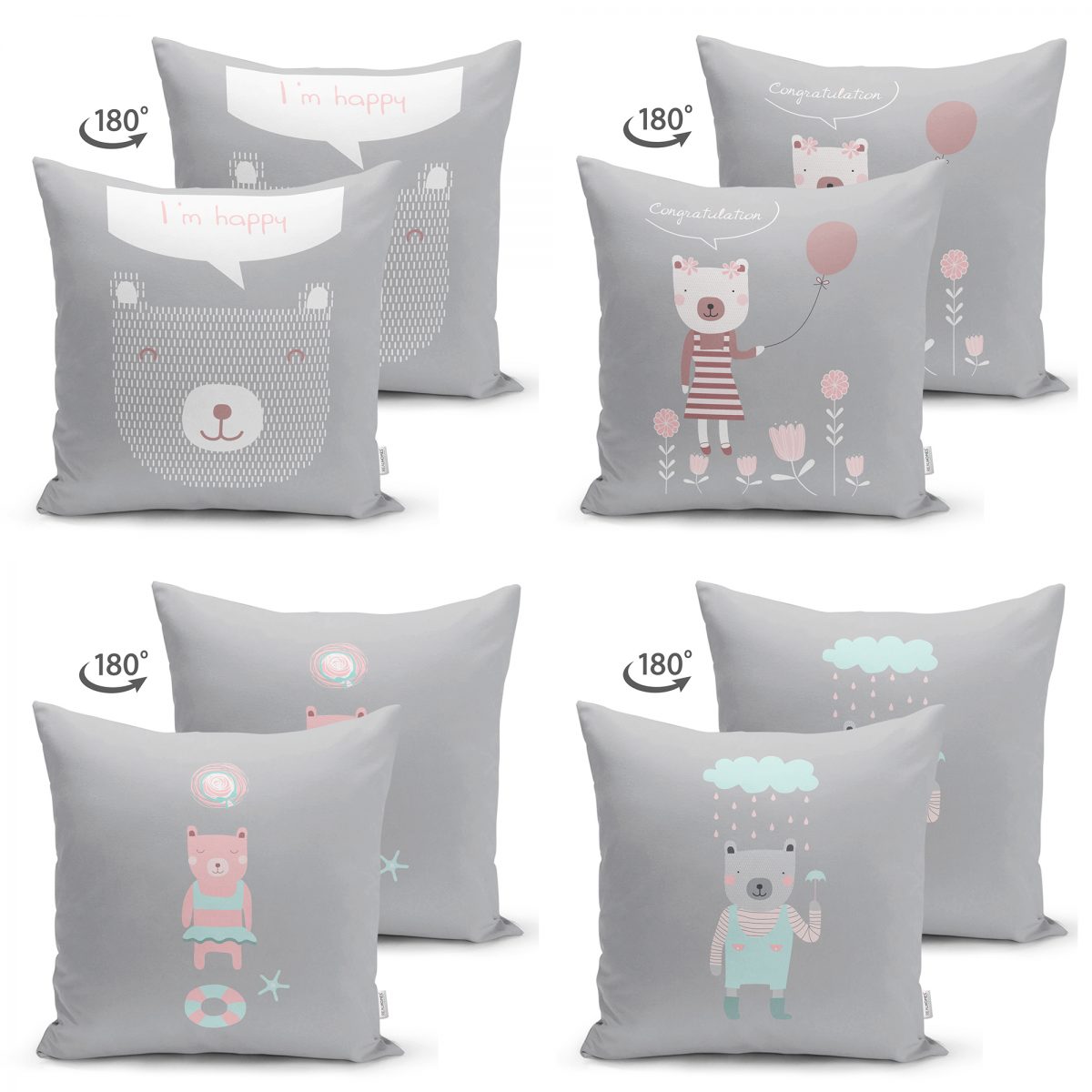 Çift Taraflı I'm Happy 4'Lü Süet Kırlent Kılıf Seti Realhomes