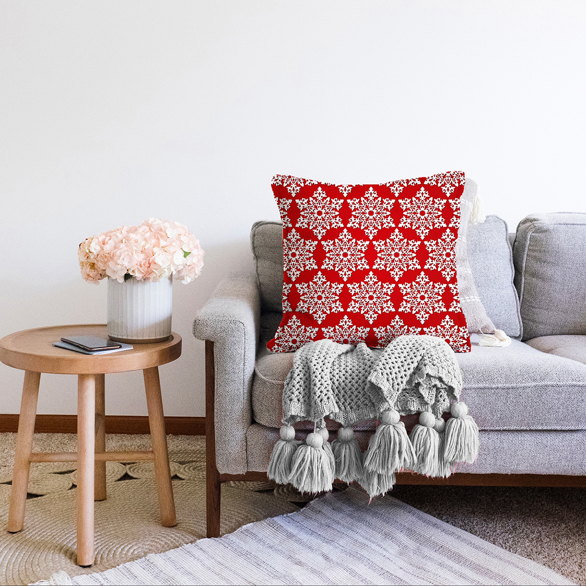Kırmızı Zemin Üzerinde Beyaz Kartanesi Desenli Modern Raşel Kadife Yastık Kırlent Kılıfı