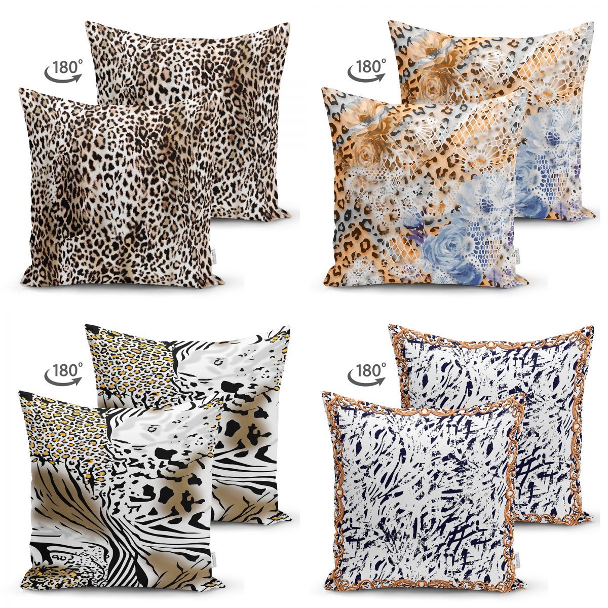 Çift Taraflı Leopar Tasarımlı 4’Lü Süet Kırlent Kılıf Seti